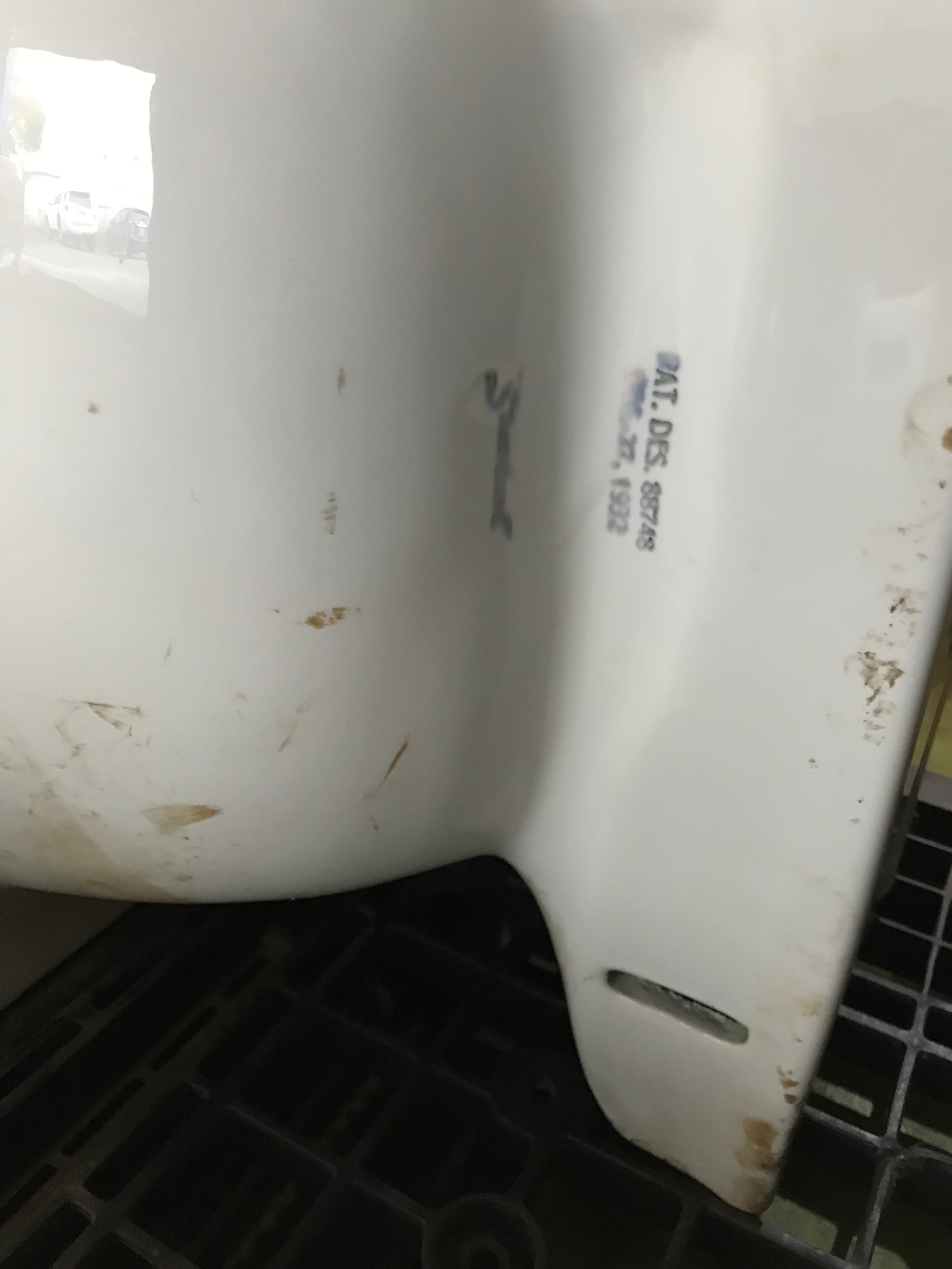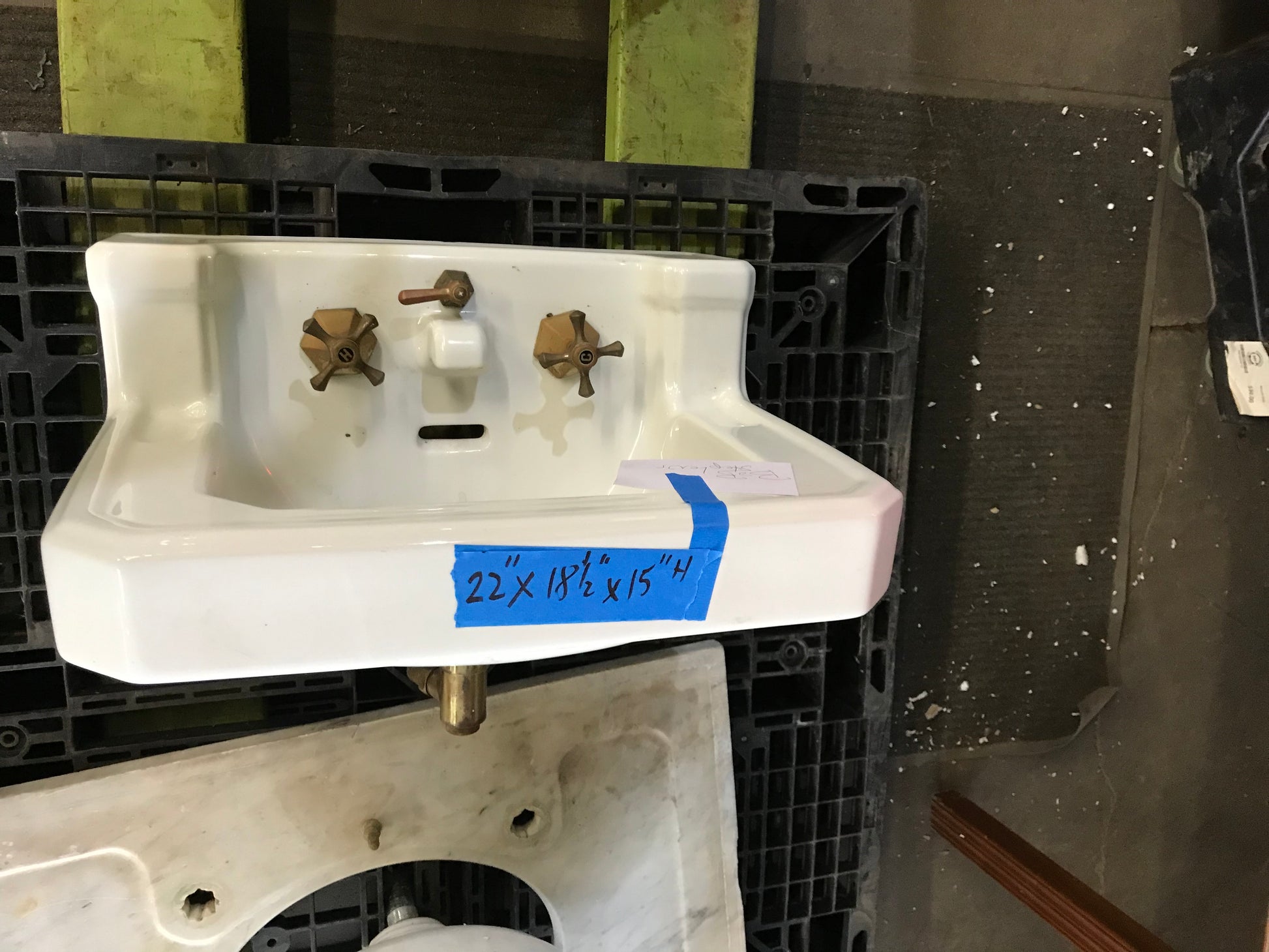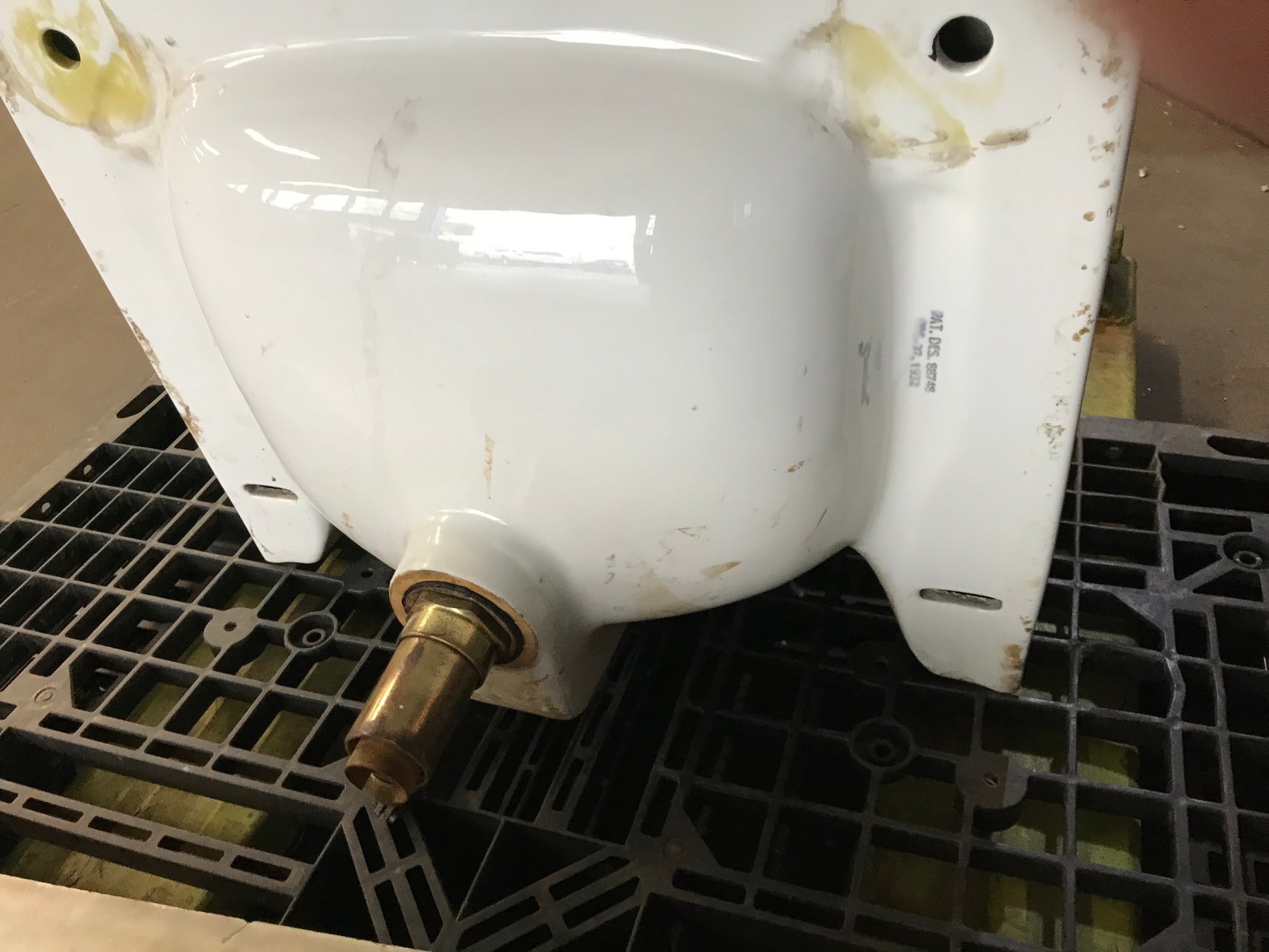 Description : Cast Iron Sink- Standard Brand 1932: Brass Faucet and Overflow 24" x 18" Integrated Backsplash
