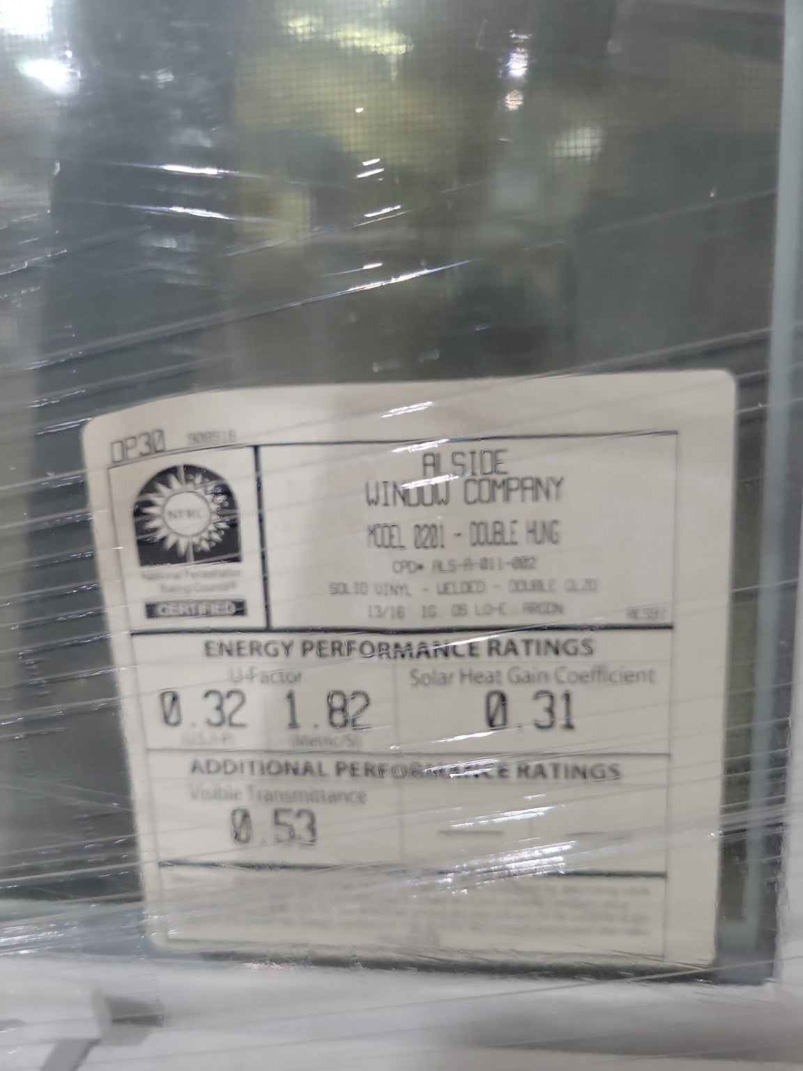 This Alside Window Company Model 2201 Double Hung unit is a high-efficiency vinyl window from Alside’s residential performance line. Constructed from solid welded vinyl, it features double-glazed insulated Low-E argon-filled glass for superior thermal insulation and UV protection. Measuring 47" W x 48" H x 4" D, the unit offers clean sightlines, dual operating sashes, and tilt-in functionality for easy cleaning. With a U-Factor of 0.32, Solar Heat Gain Coefficient of 0.31, and Visible Transmittance of 0.53, this window meets modern energy standards under NFRC certification. The window remains factory-wrapped and unused, ideal for remodels or energy-efficient new builds.