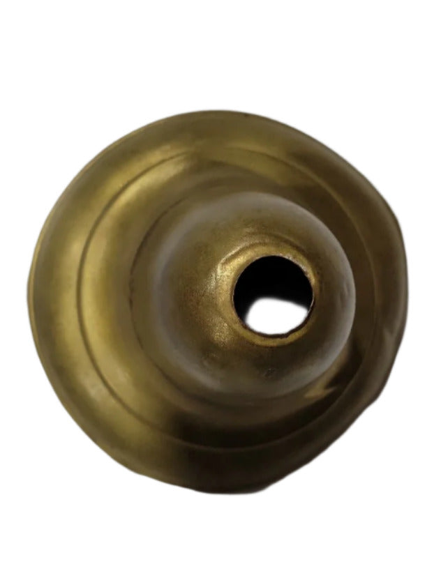 This antique brass lamp canopy features a classic tiered dome silhouette with a smooth finish and a minimalistic profile. It has aged gracefully, with natural patina and minor wear that add to its vintage appeal. Its compact design is ideal for pendant lights or sconce rebuilds.