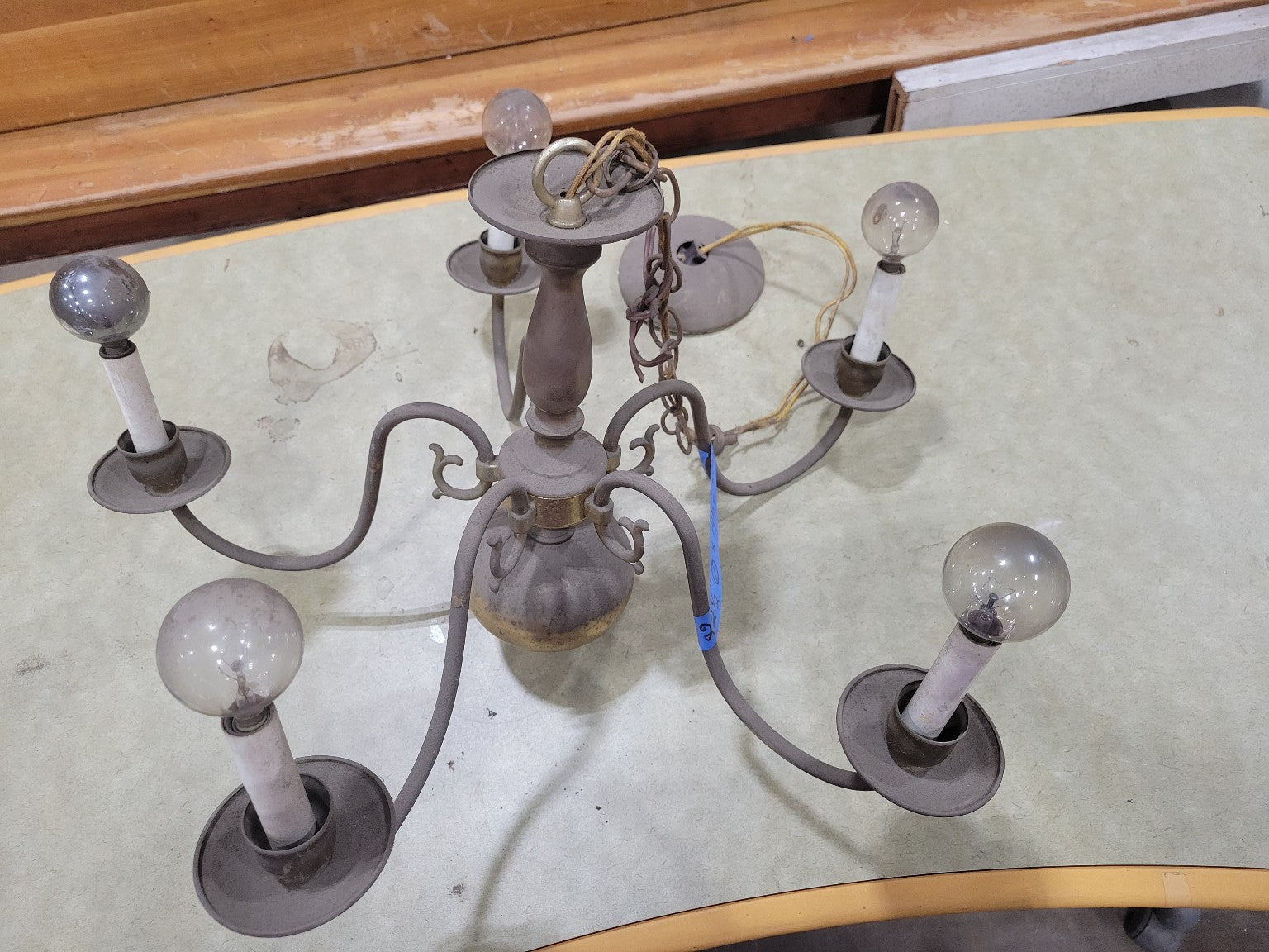 Antique Cast Iron 6-Light Chandelier – Art Deco Revival with Ornamental Arms (AS IS)