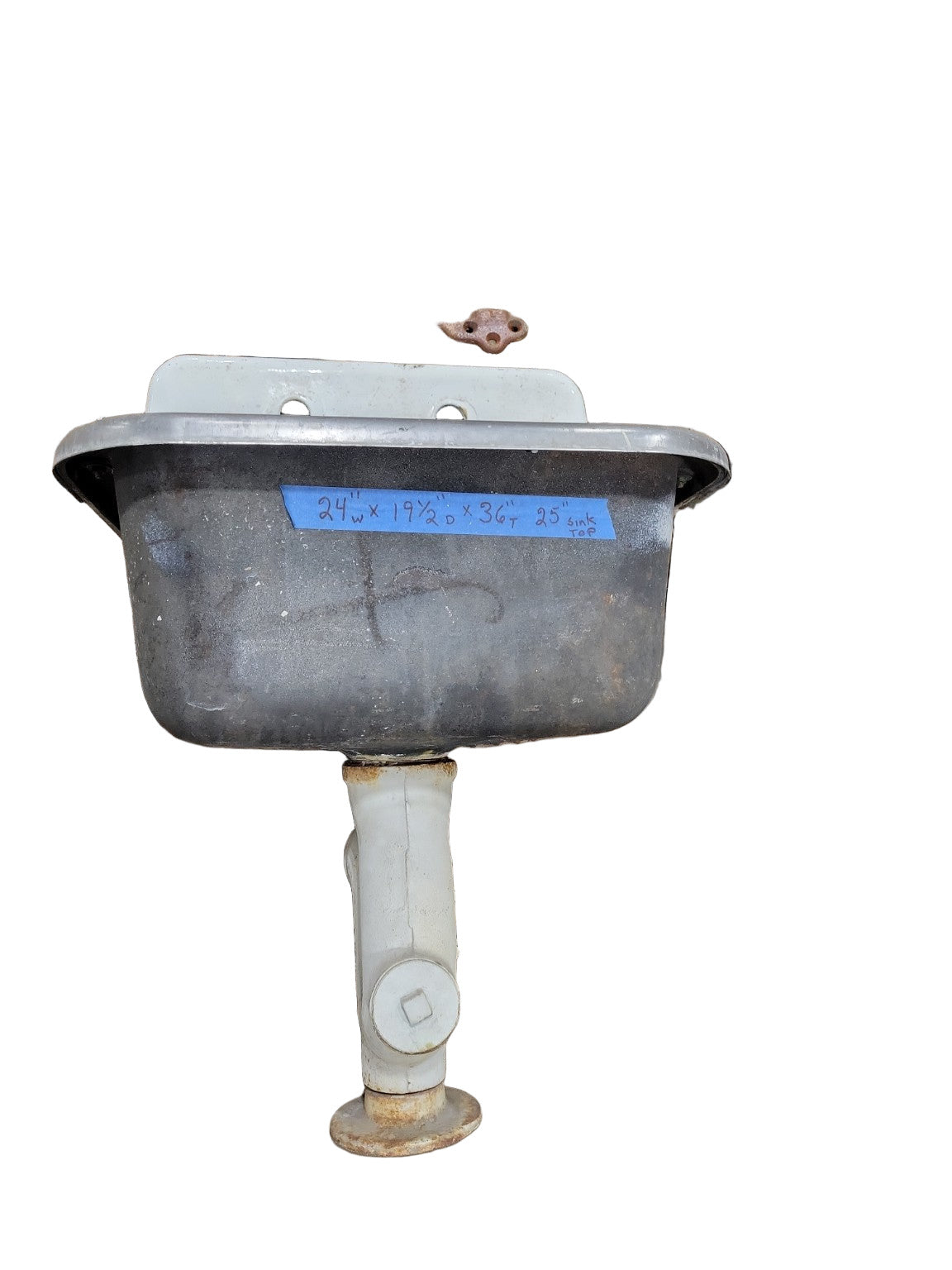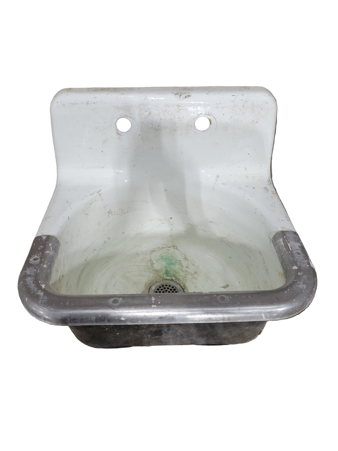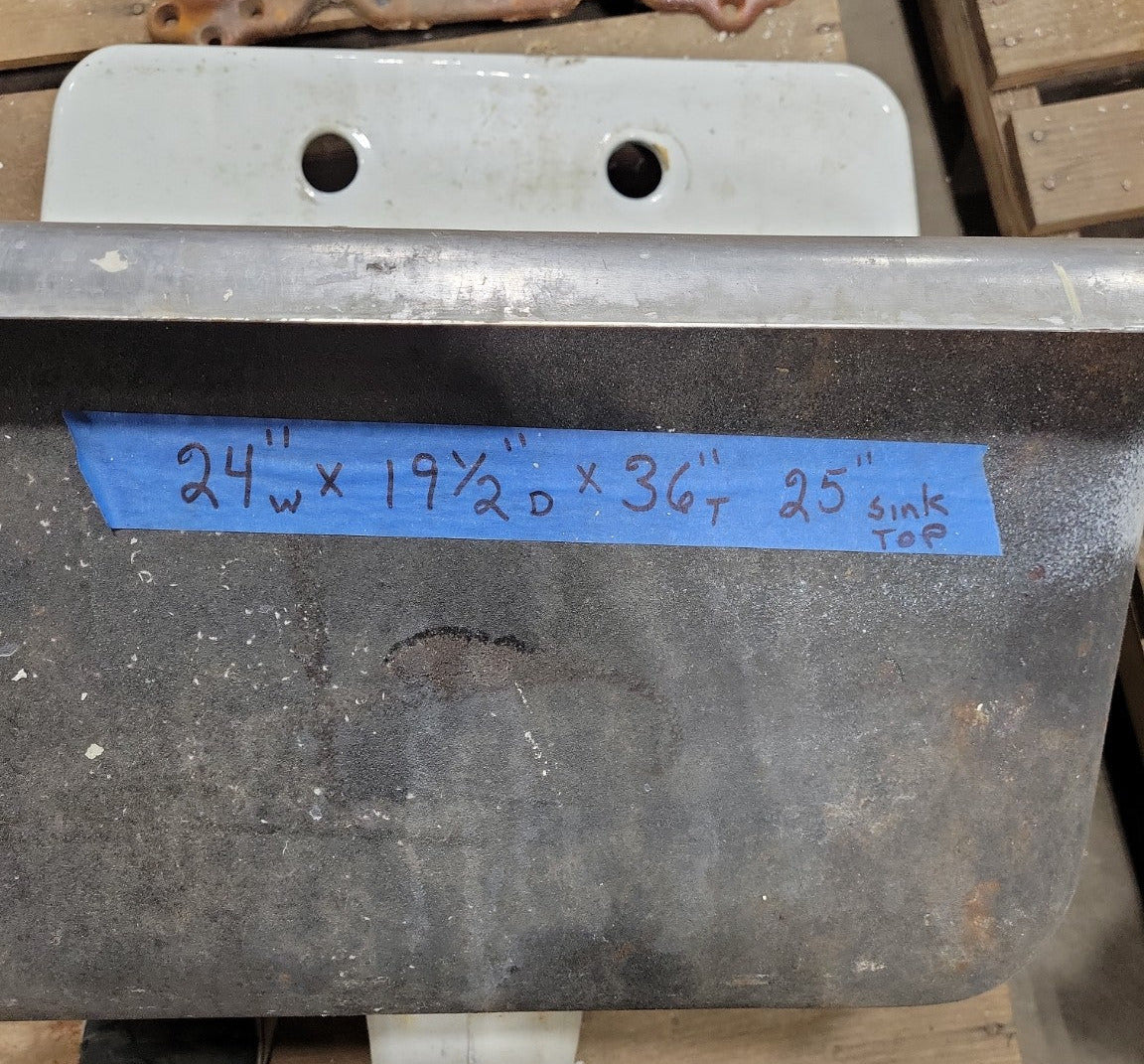 Antique Cast Iron Wall-Mount Utility Sink with Integral Trap and Aluminum Rim – 24" x 19½" x 36"
