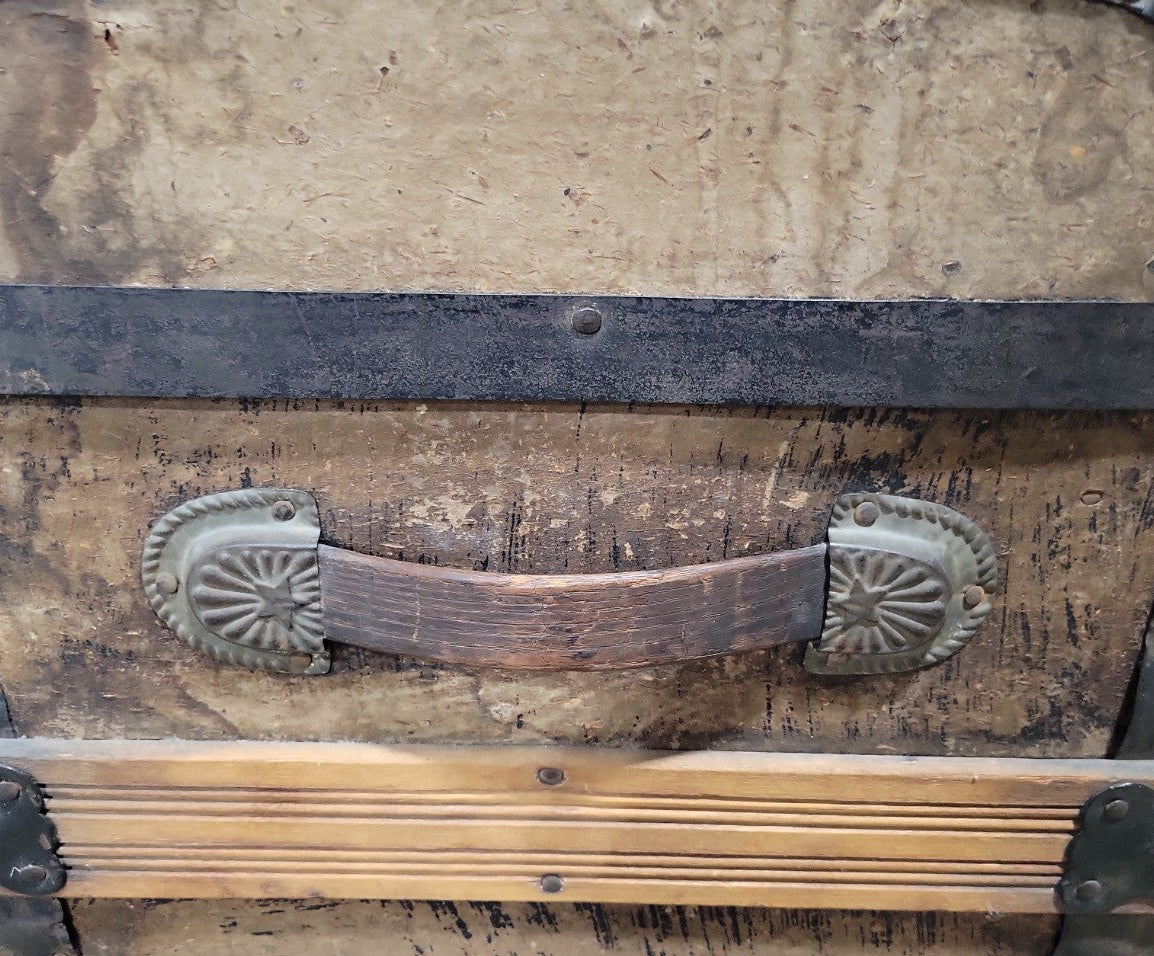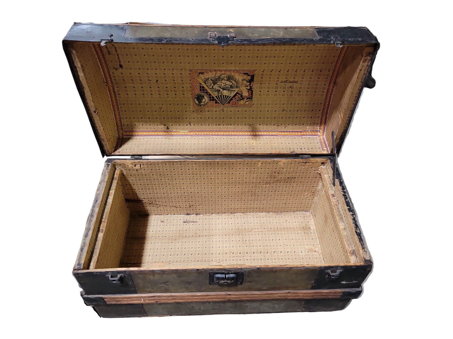 Antique Dome-Top Steamer Trunk with Embossed Hardware and Lined Interior