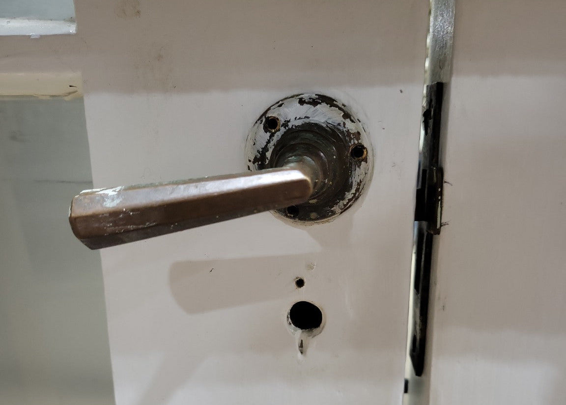 Antique French Doors with Brass Hardware and Frosted Glass Film