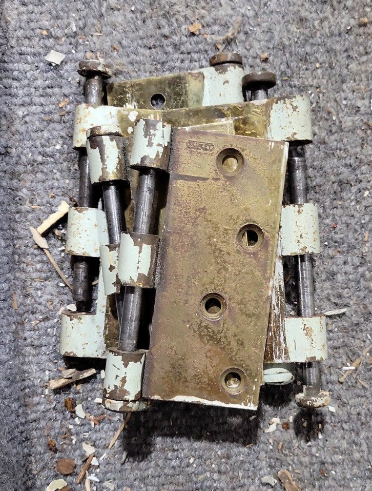Salvaged from an early 20th-century residential structure, these doors exemplify the quality joinery and brass detailing common to upper-tier millwork from the interwar period.
