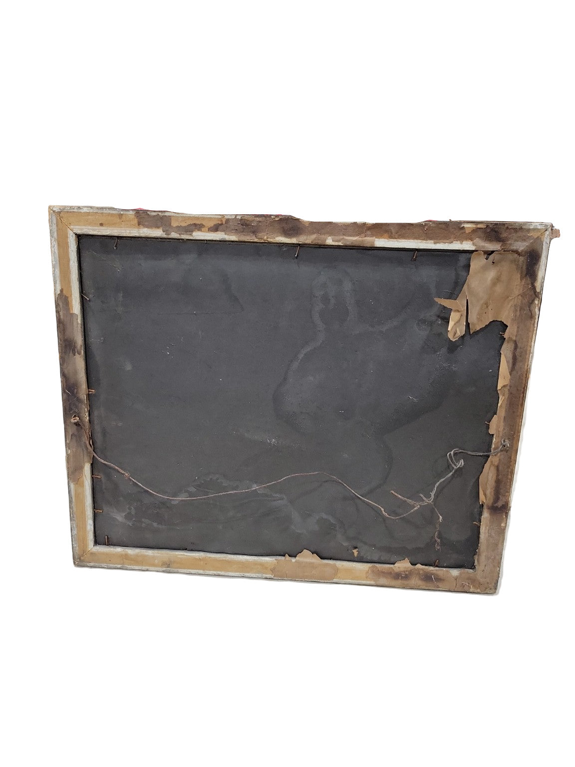 This antique sepia-toned photograph captures a formal banquet scene featuring a large gathering of men and women, likely from the early 20th century based on the attire and composition. Housed in its original distressed wooden frame with worn gesso accents, the piece exudes historical charm. The frame shows signs of wear and repair, including chipped corners and aging backing paper, which enhance its authenticity and visual texture. Ideal for collectors of vintage photography or as a statement wall piece with historic character.