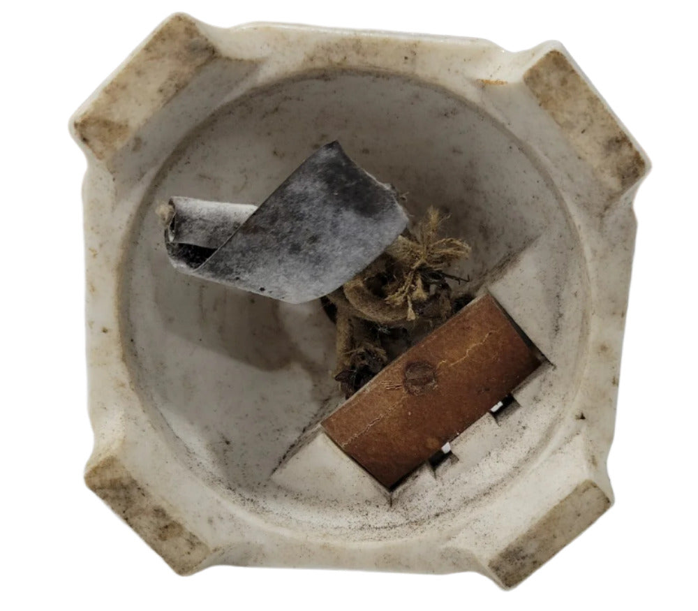 This antique table lamp base is crafted from white porcelain and features a fluted column with classical detailing. The stepped octagonal base adds a geometric Art Deco influence. It includes an old light socket and wiring, though it is untested and likely requires rewiring for safe use. Measuring approximately 4" in diameter and 8" tall, this piece is ideal for restoration or repurposing as a small bedside or accent lamp.