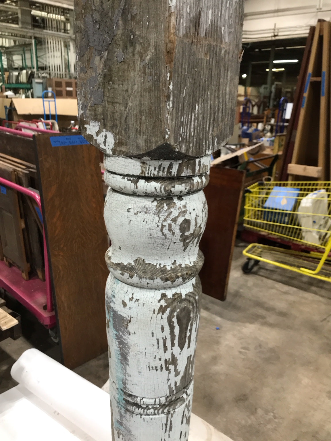 History: This piece was likely salvaged from a historic porch, featuring original chippy paint and weathered wood, showcasing years of use and exposure.