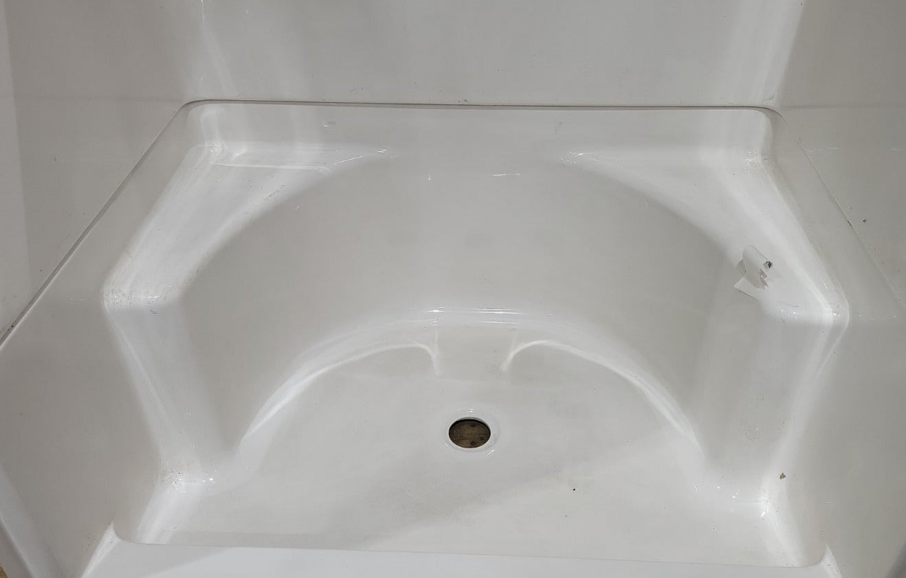 This 2-piece gelcoat shower kit by Aquatic is designed for efficient installation and long-term durability. The unit features two integrated molded bench seats—one on each side—for comfortable, seated showering, and one integrated molded shelf for storing soap or shampoo within easy reach. The smooth, high-gloss gelcoat surface ensures easy cleaning and resistance to mold and mildew. Built with reinforced fiberglass backing, this shower is ideal for new construction or replacement applications where accessibility, convenience, and structural integrity are key. Its center drain allows for standard plumbing alignment, and the 2-piece construction makes transport and installation significantly easier than a one-piece model.