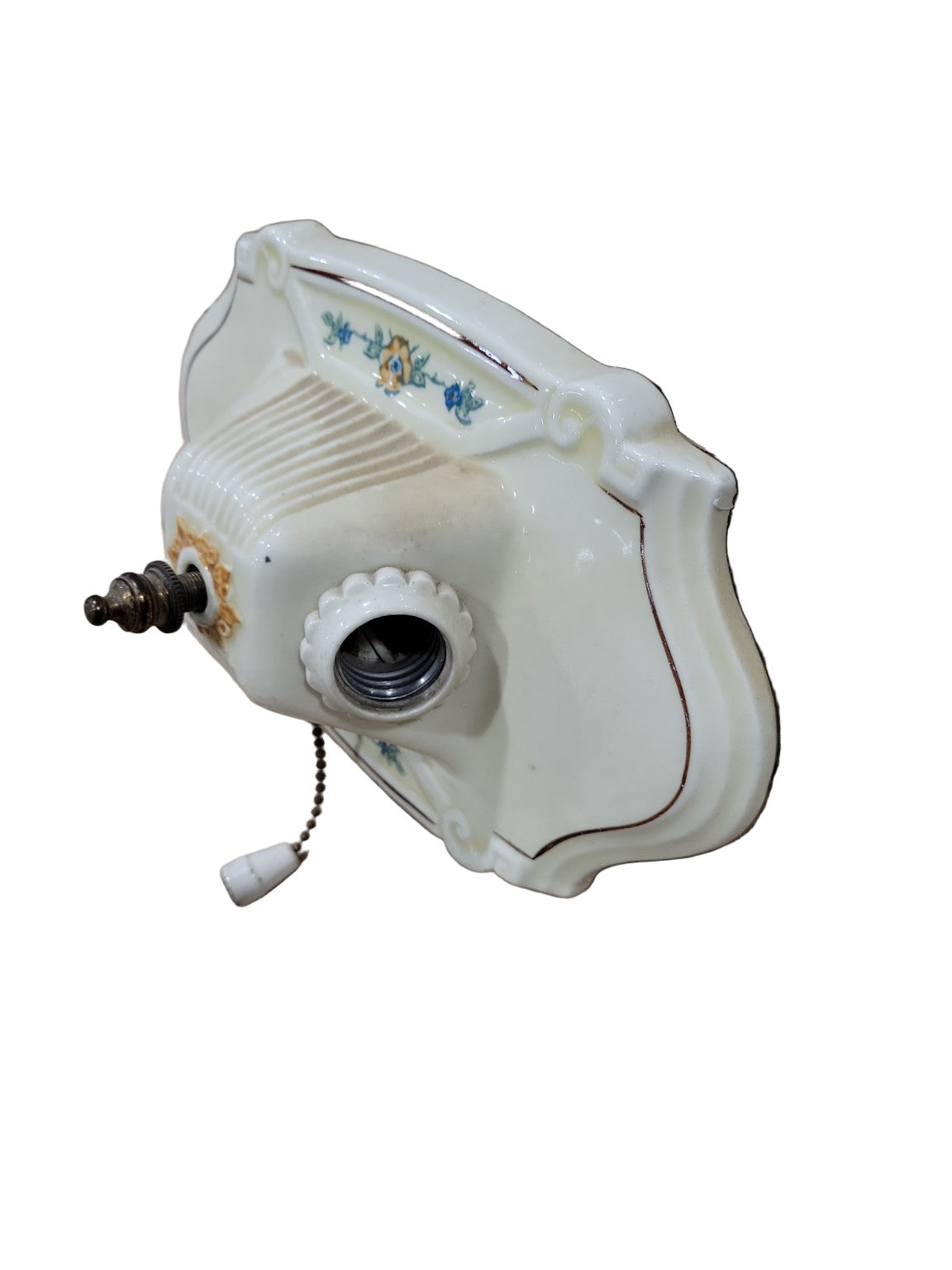 Art Deco Floral Ceramic Double Wall Sconce – Pull Chain Fixture
