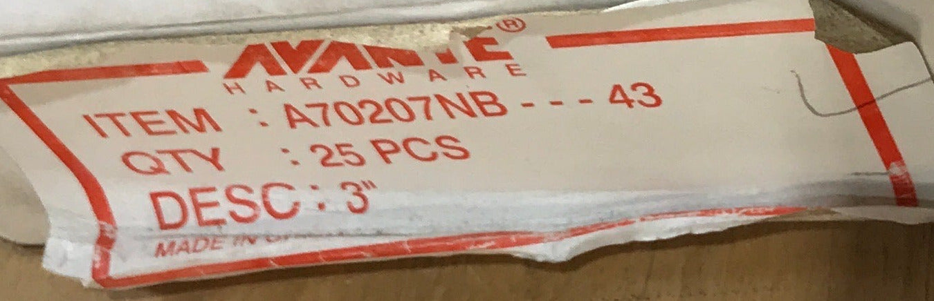 Description : This boxed set of 25 Avante cabinet handles features a gently arched silhouette in a high-gloss polished chrome finish, ideal for modern and transitional cabinetry. Each pull is individually wrapped in its original packaging, confirming new-old-stock condition. The ergonomic curve provides a comfortable grip, while the sleek finish offers a clean, reflective surface that complements both light and dark cabinetry. These handles are perfect for kitchens, bathrooms, or commercial millwork, and fit standard 3” center-to-center mounting configurations. Style: Modern / Transitional Technique: Die-cast metal with polished chrome plating Tools Used: CNC cast mold, polishing wheel, chrome plating system History: Surplus hardware from a manufacturer or contractor closeout, likely intended for kitchen or vanity cabinetry. Manufacturer / Maker: Maker: Avante Hardware – Item A70071NB Measurements: Approx. 3” center-to-center (total handle length slightly longer) Suggested Weight: Approx. 3–4 lbs (box of 25) Suggested Shipping Package Dimension: 8” W x 6” L x 3” D