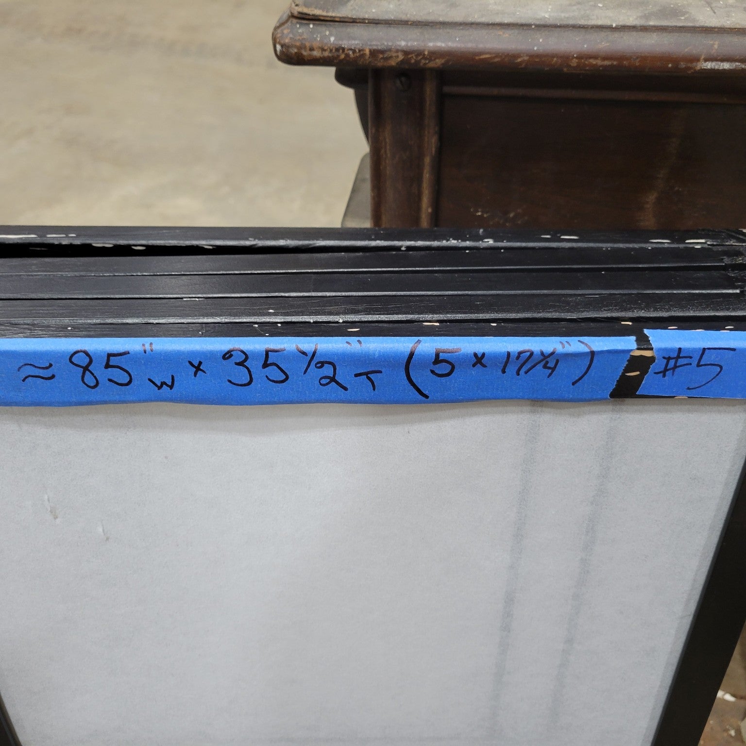 This is a five-panel Shoji screen room divider, featuring a black wooden frame with translucent white paper panels. The design incorporates a modern geometric grid pattern, creating an elegant and functional accent for any space. The hinged panels allow for flexible positioning, making it ideal for privacy, partitioning a room, or decorative purposes.