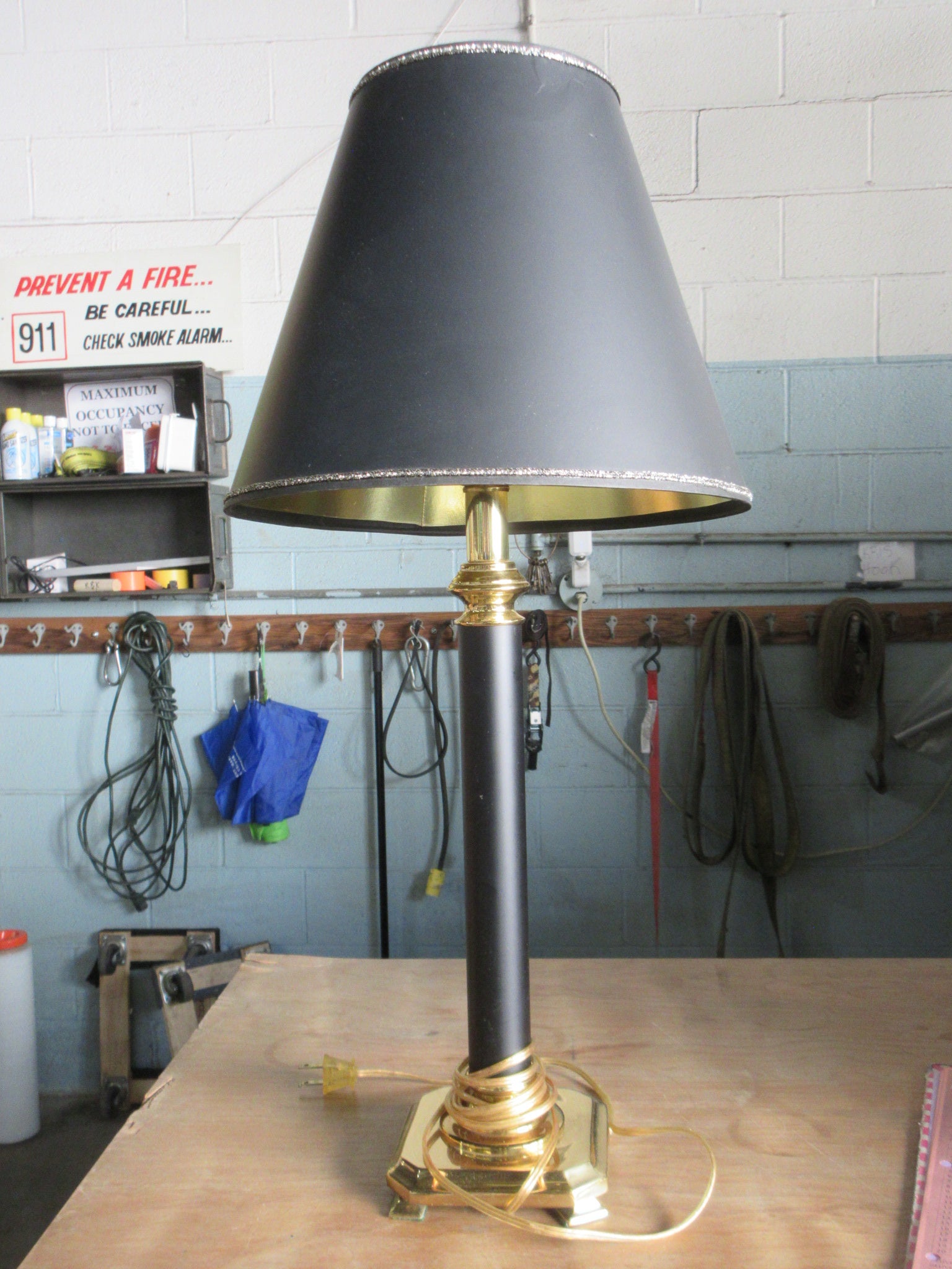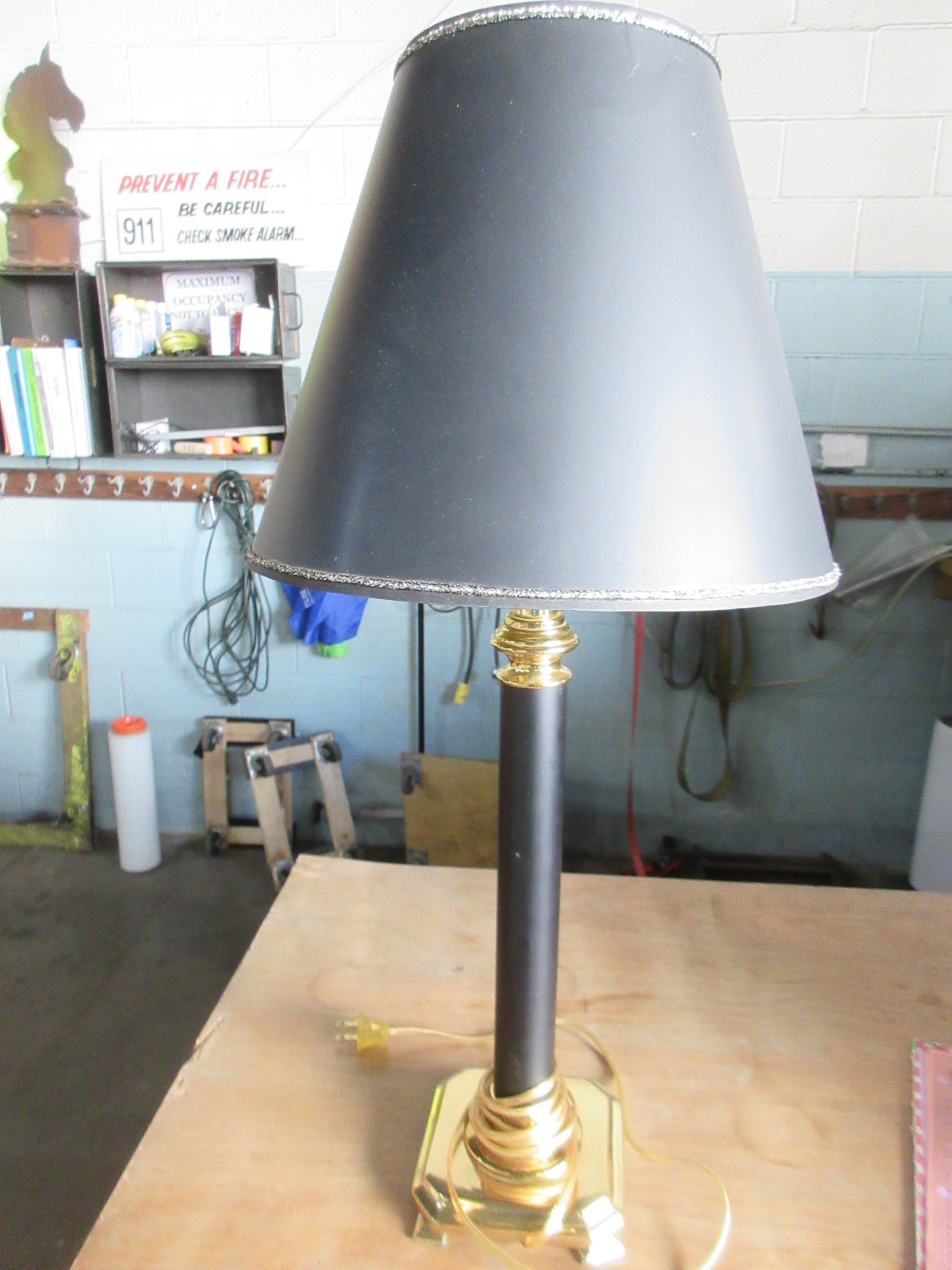 Description : Black and gold table base with matching shade.