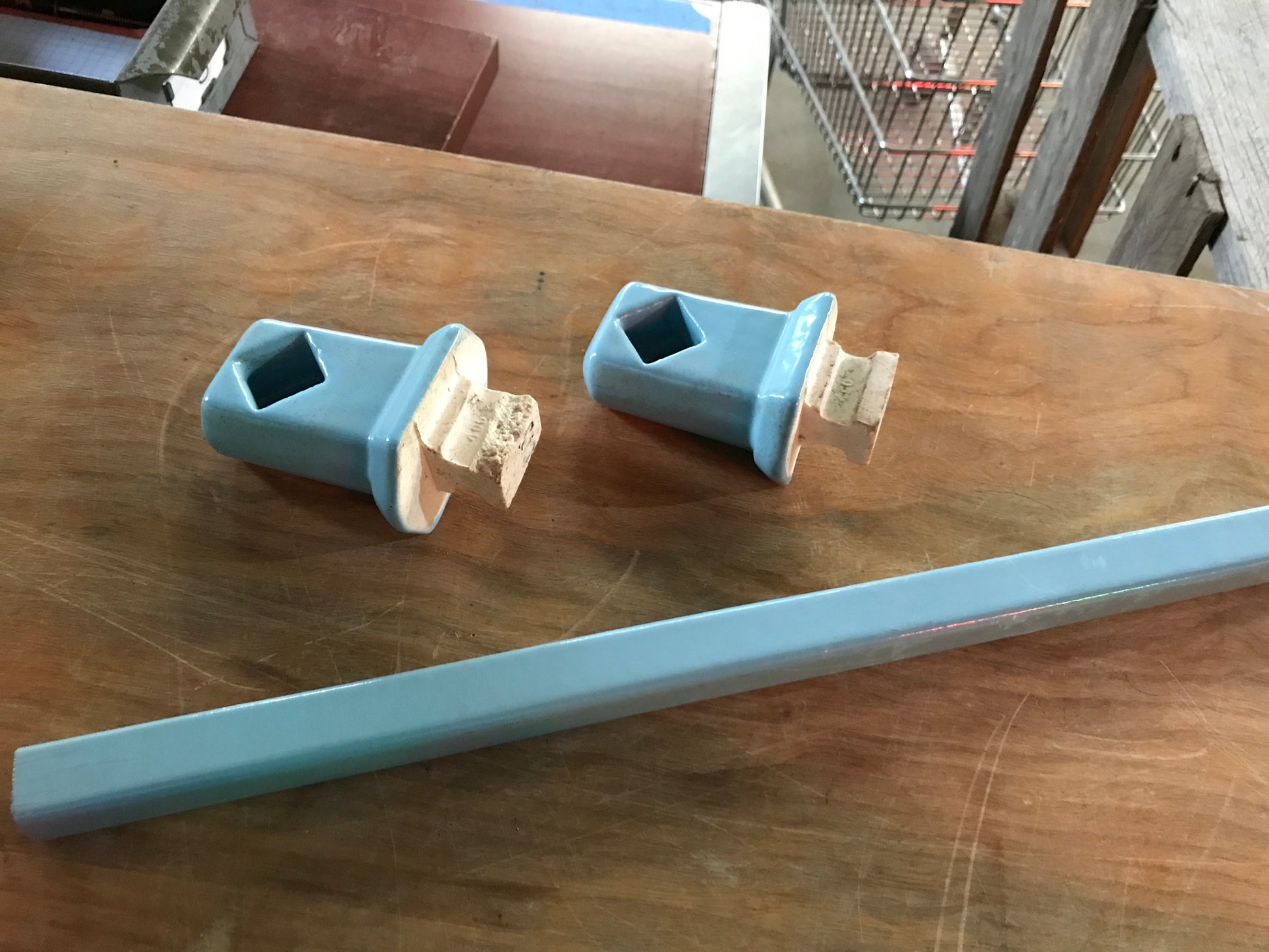 Blue Towel Bar 18" - Ceramic Holder and Wood Bar