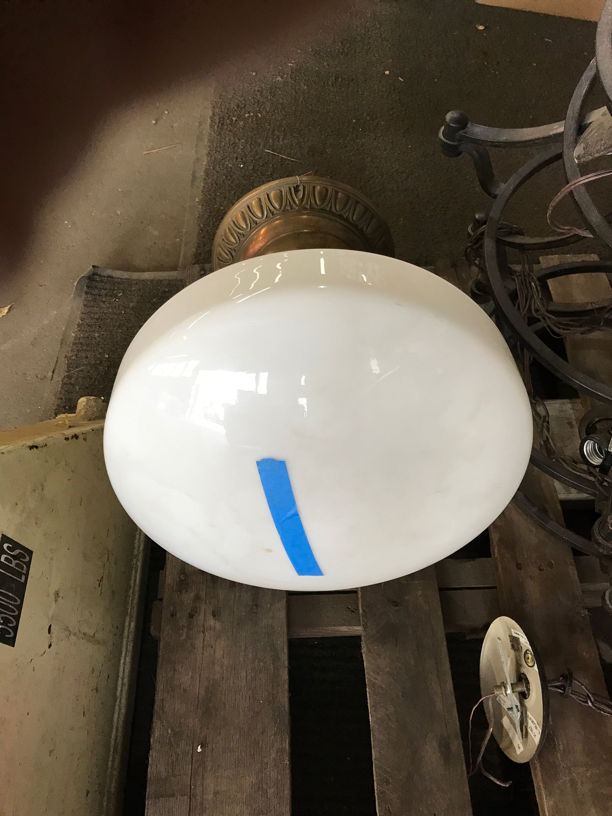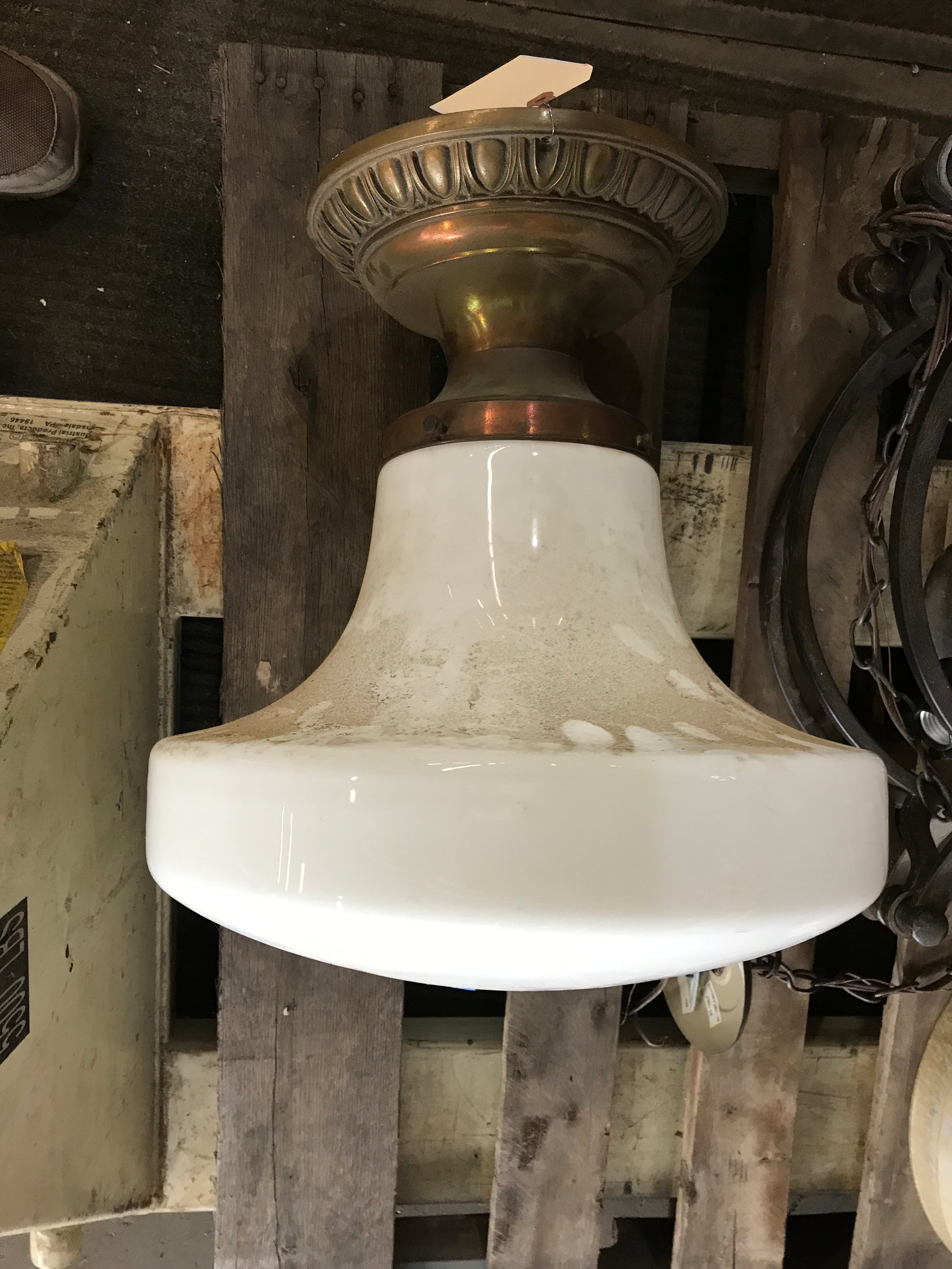 Brass Ceiling Mount Light Fixture with Large White Glass Globe