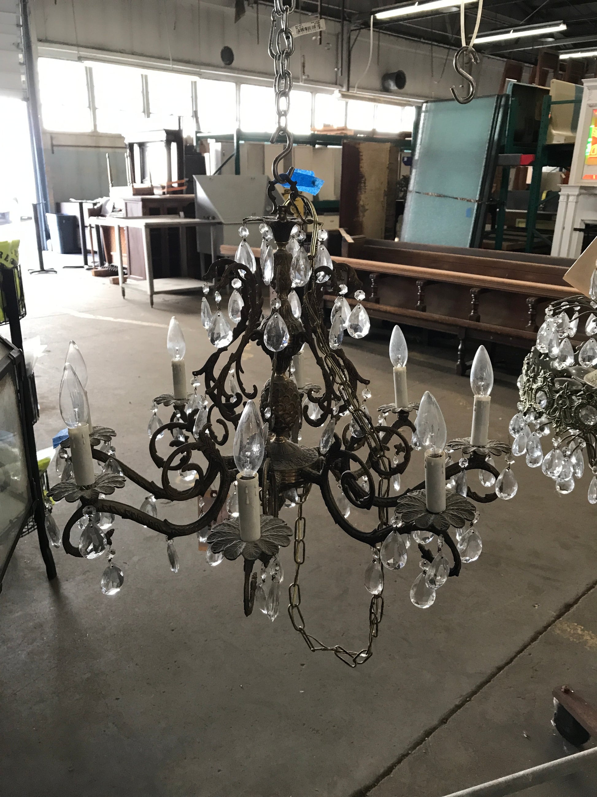 Brass Chandelier w/Crystals 1970's