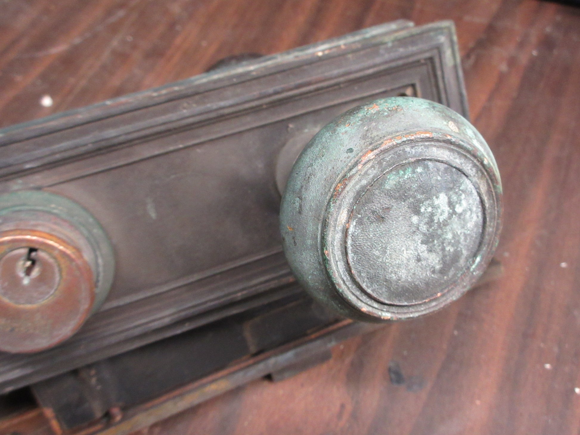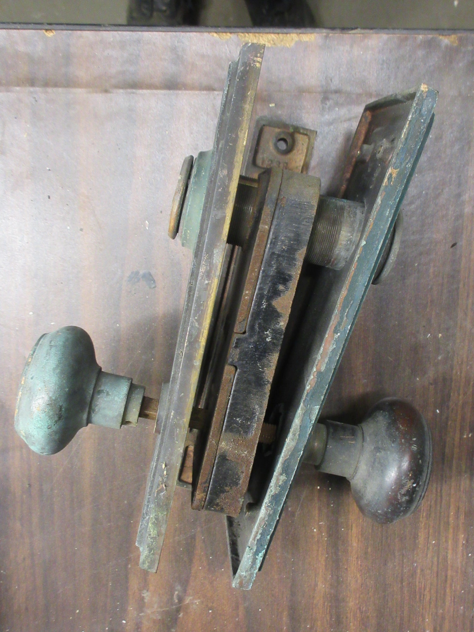 Description : Salvaged brass doorknob set with mortise.