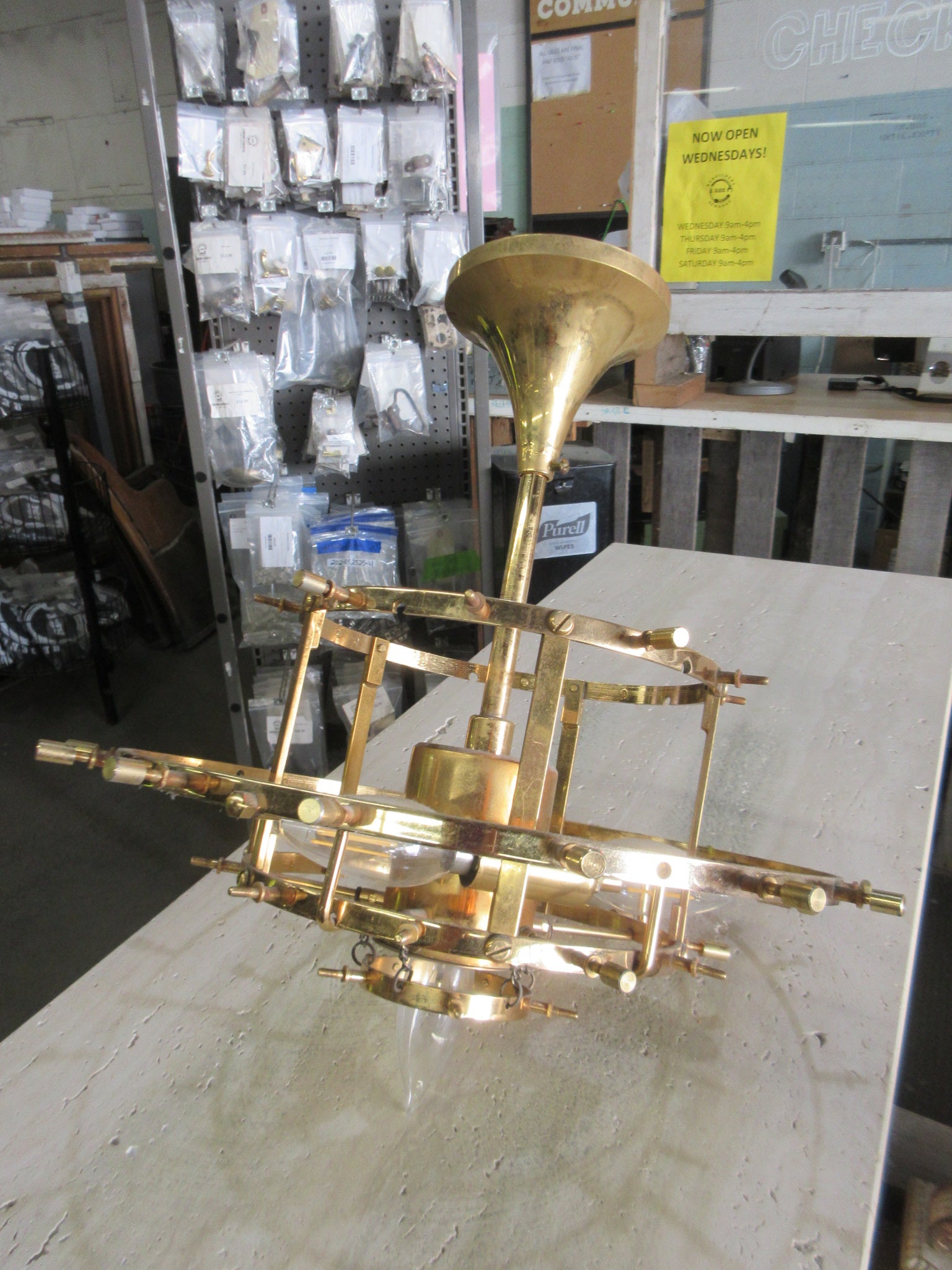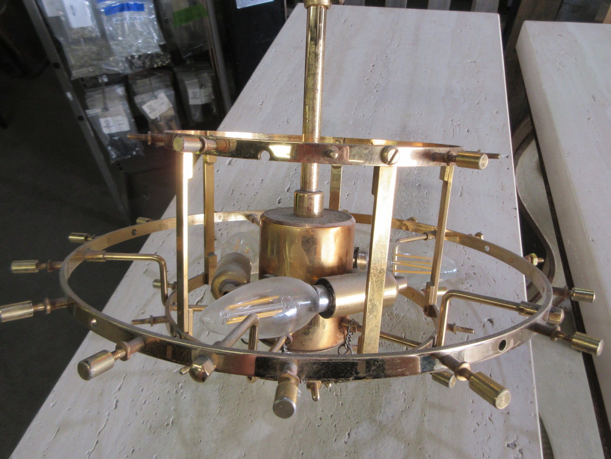 Description : Brass ceiling mount chandelier fixture without crystals.
