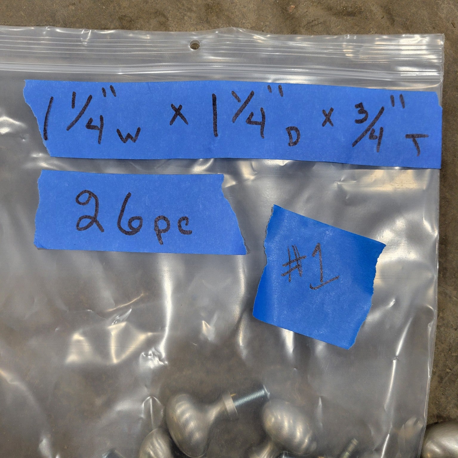 A set of 26 brushed nickel cabinet knobs, perfect for updating furniture, cabinets, or drawers. These knobs feature a smooth, rounded design with a slightly tapered base, offering a comfortable grip and a modern aesthetic. Each knob includes a screw for easy installation.