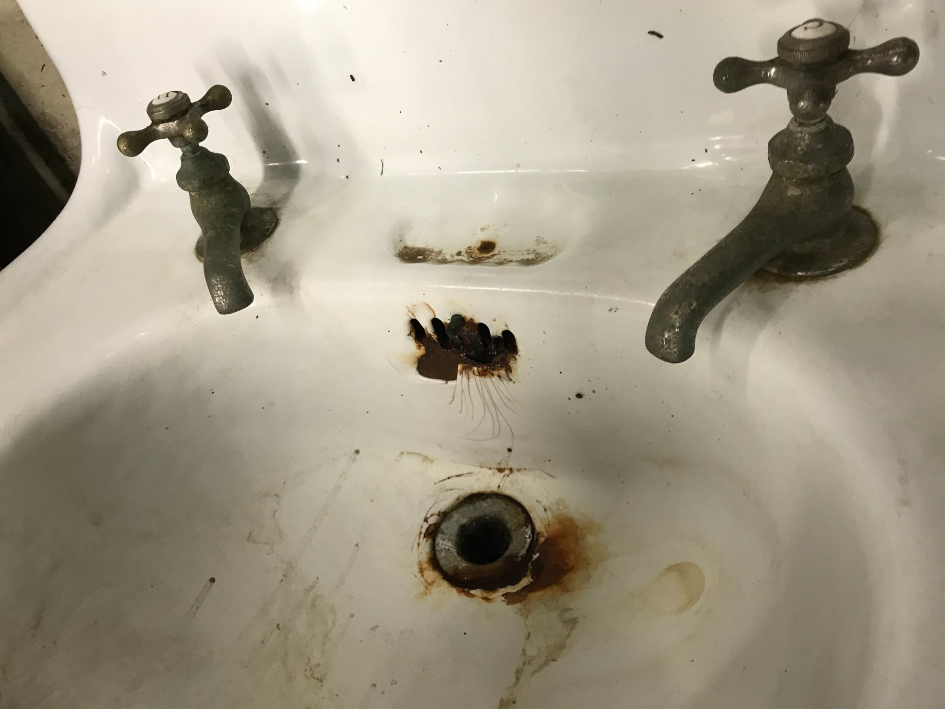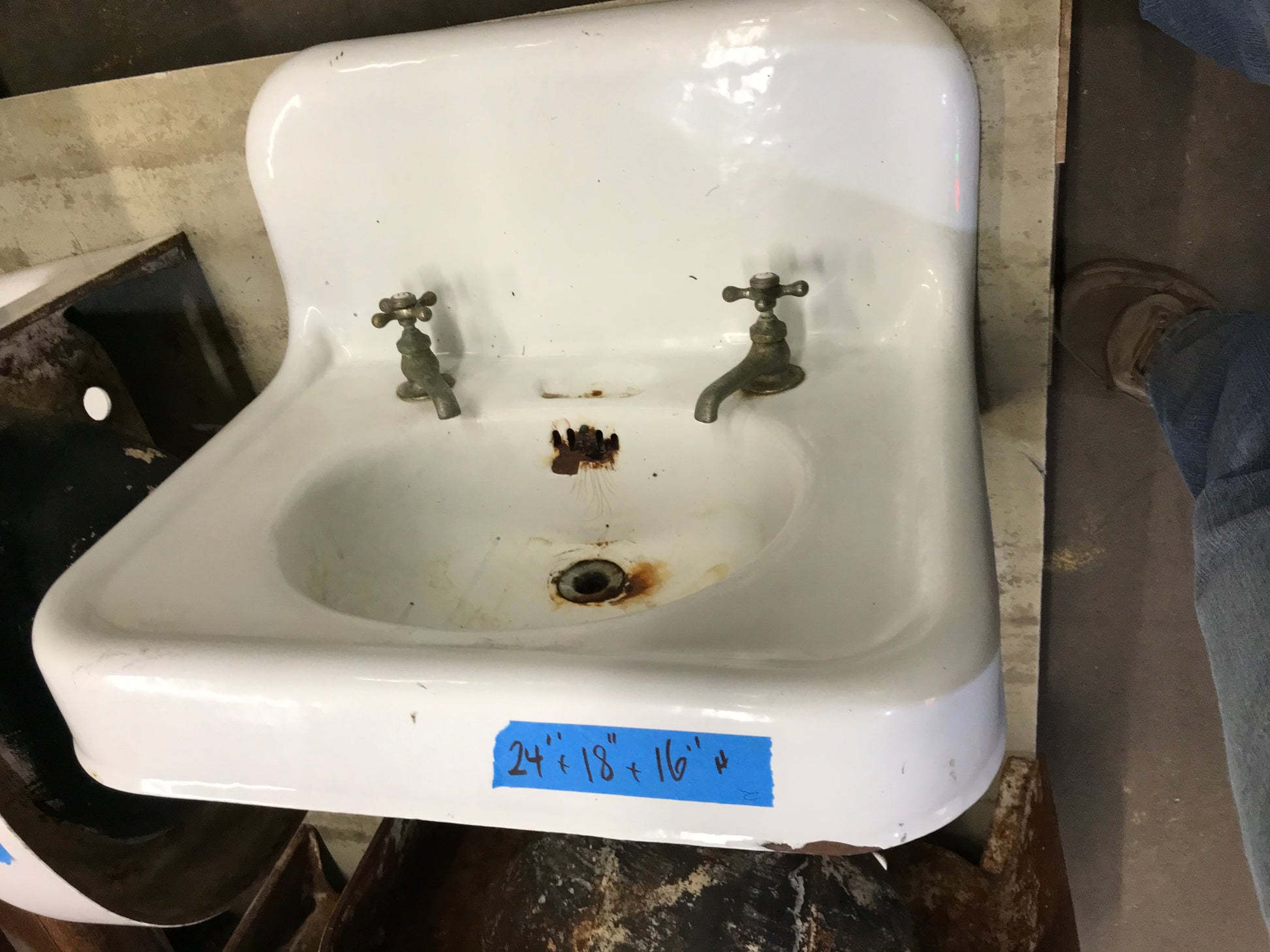 Description : Cast Iron sink wall mount with faucet and backsplash 24" x 18"