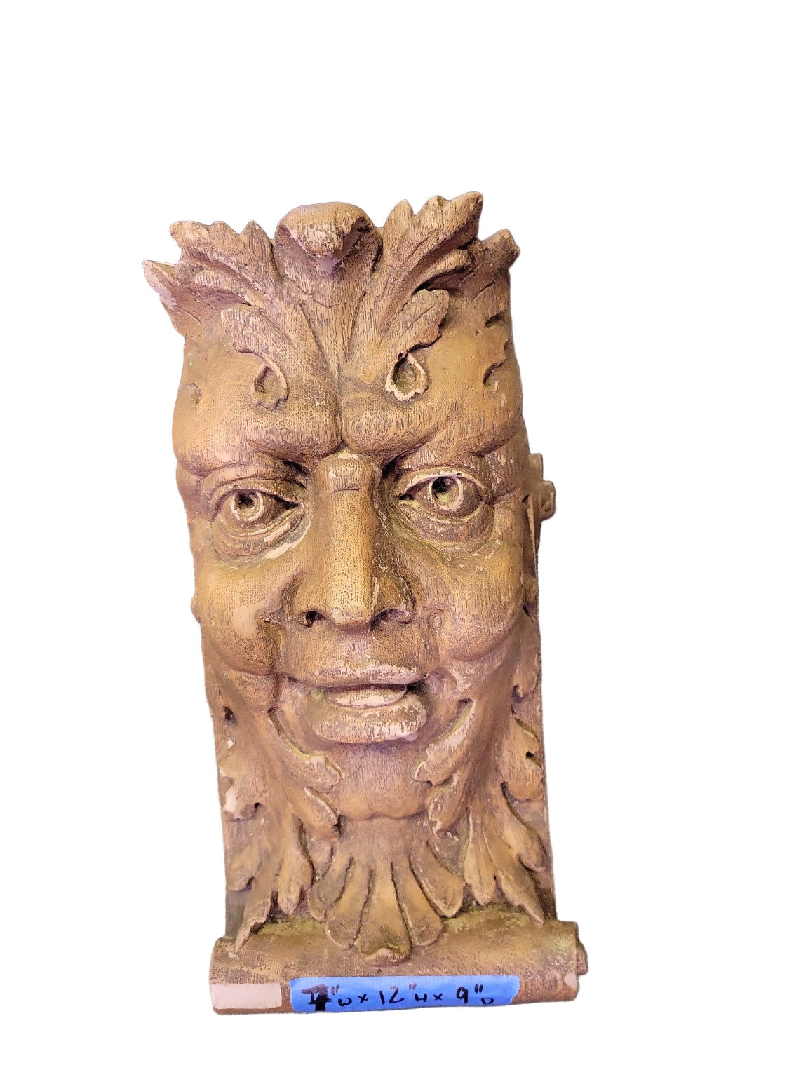 Wooden Nickel was founded in 1976 in Cincinnati, Ohio, and became known for its architectural salvage and detailed reproductions. This Green Man corbel reflects a late 20th-century revival of medieval European design in interior and garden decor.