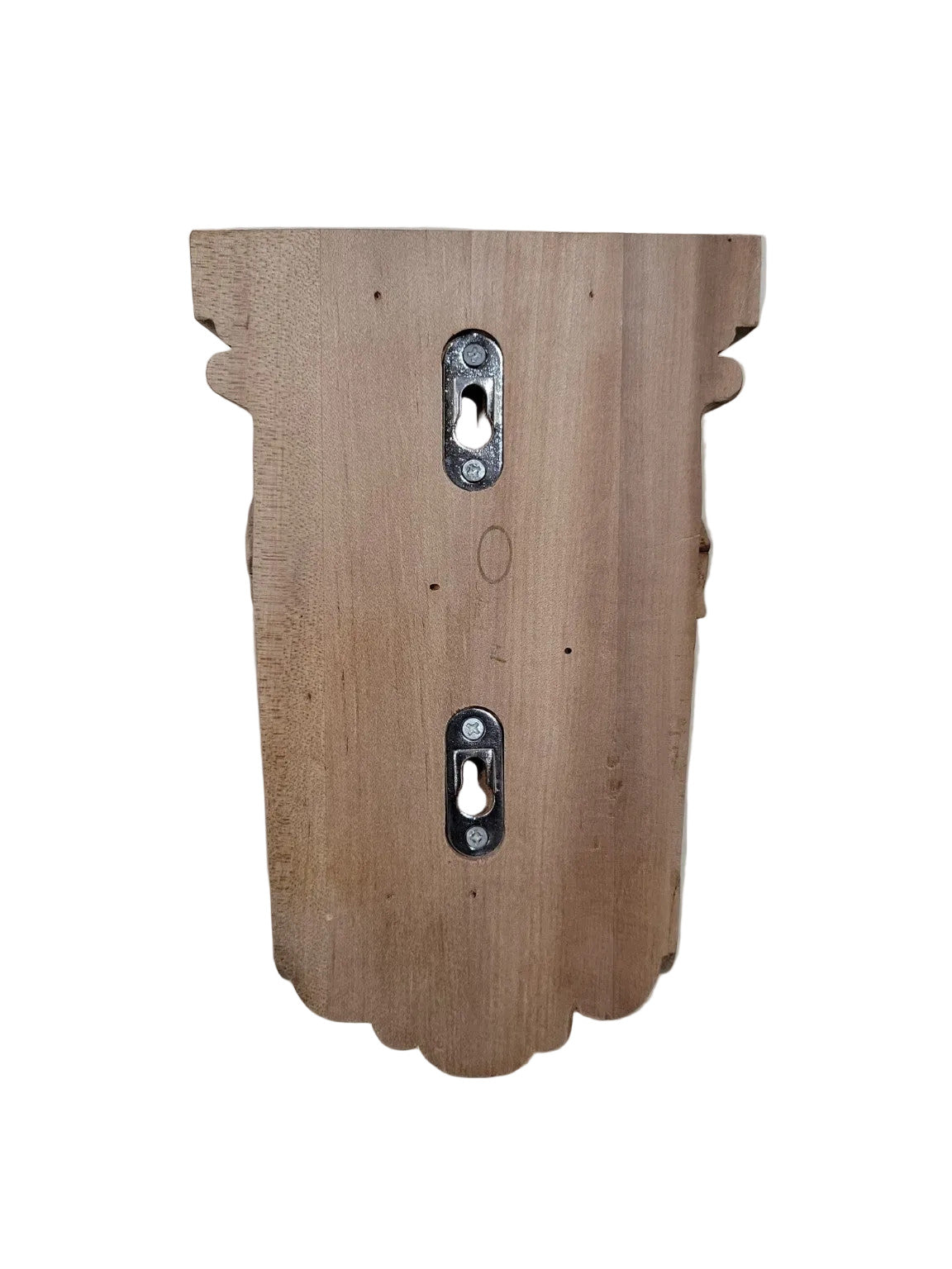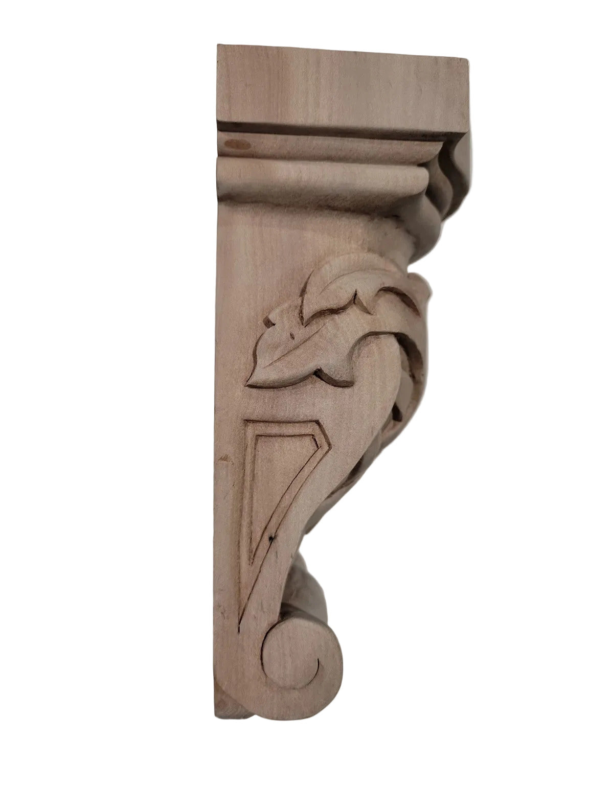 The IM-CA30 cherry corbel features a striking interlaced pattern inspired by Celtic and Gothic design motifs. This medium-sized bracket showcases bold linear carvings and layered leaf elements, all hand-finished from solid cherry wood. The intricate patterning creates strong visual interest, making it a distinctive addition beneath countertops, cabinetry, or mantels. The corbel arrives unfinished and includes concealed metal keyhole mounts for a clean and secure installation.