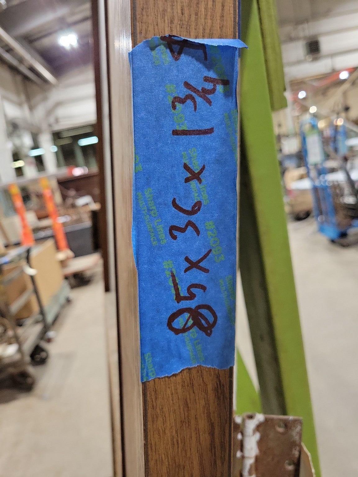 Description : This oak veneer commercial door features a safety wire glass viewing window in the upper half and a built-in louvered air vent in the lower panel, making it ideal for utility rooms, mechanical spaces, or back-of-house installations. It retains its original brass knob and is in overall good used condition, with only light surface wear. The louver allows airflow while maintaining a closed-door barrier, a key feature in facilities prioritizing both ventilation and safety.