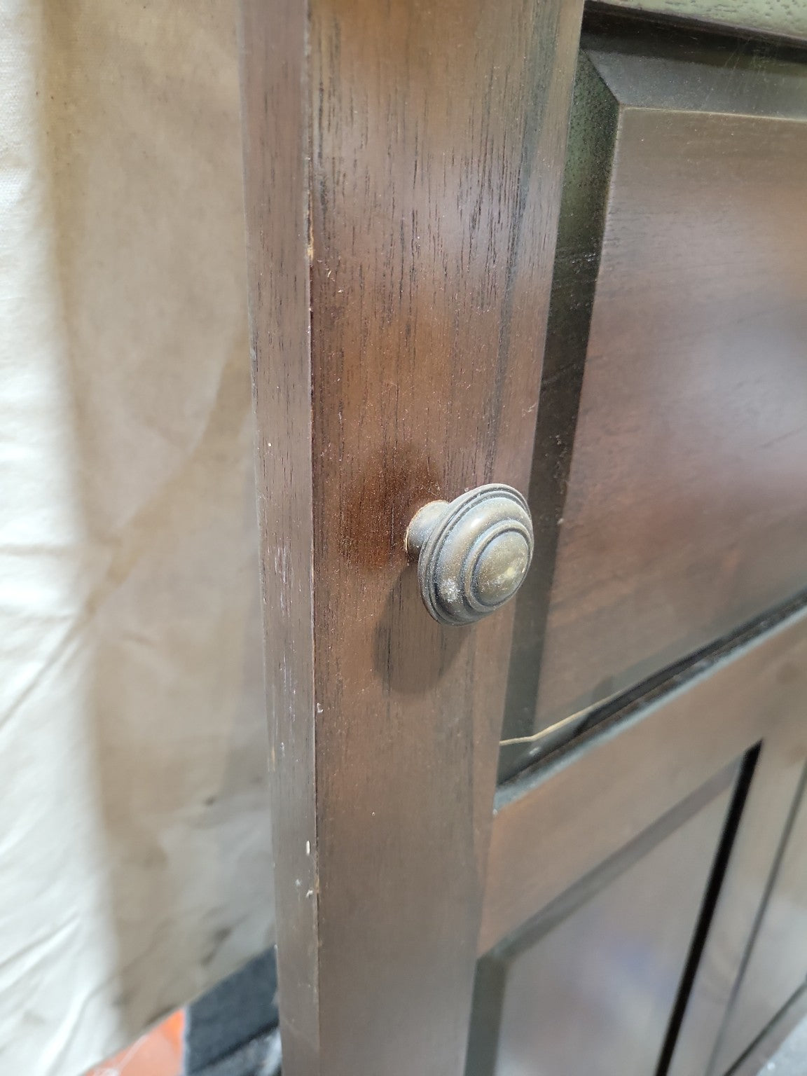Solid wood construction with mortise-and-tenon joinery and precision-routed raised panels, hand-applied walnut stain and lacquer finish