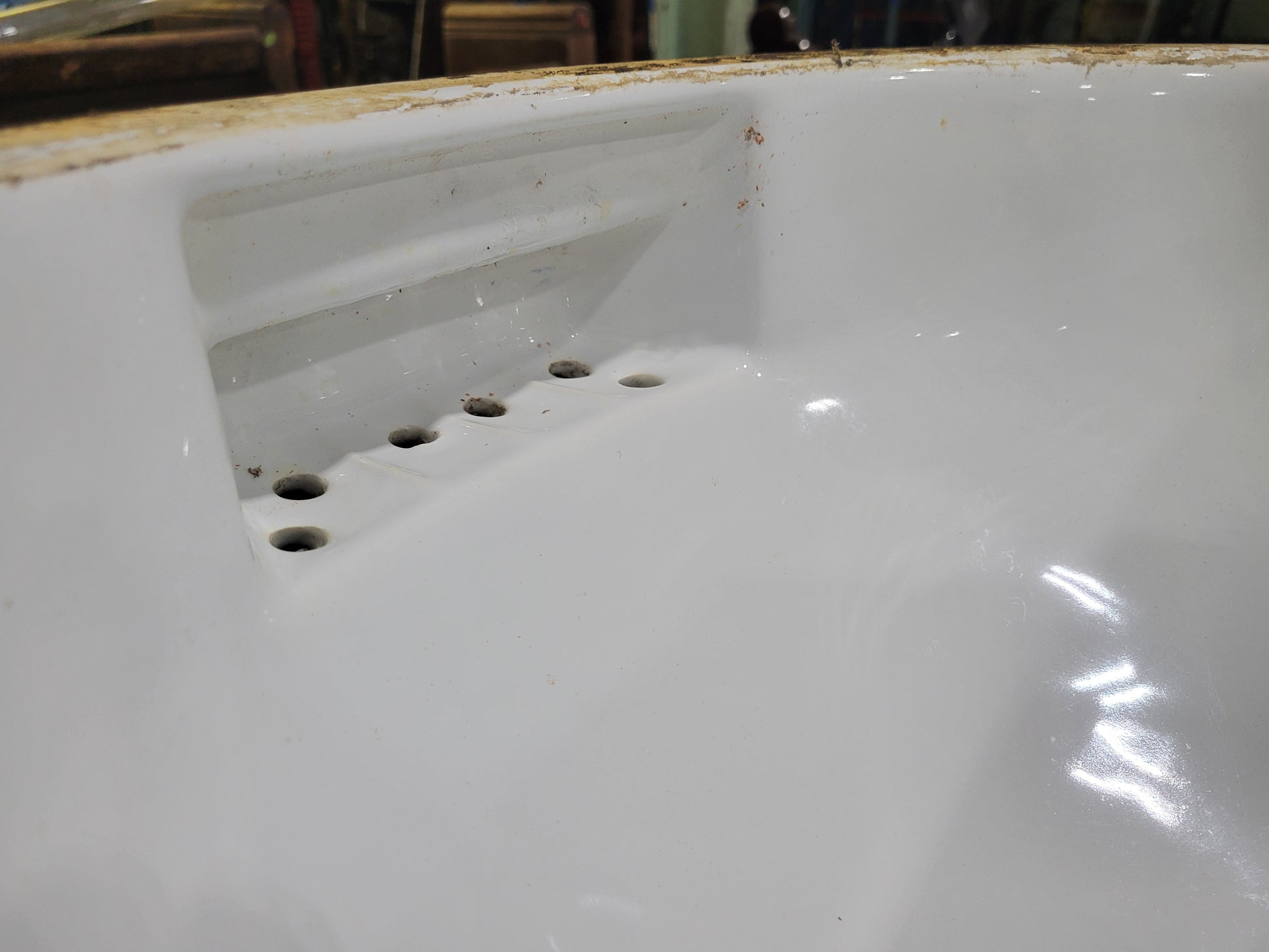 Crane was a leading American manufacturer of architectural plumbing fixtures through much of the 20th century. Their vitreous china sinks, especially those with integrated soap rests and overflow slots, are now collectible for restoration and preservation projects.