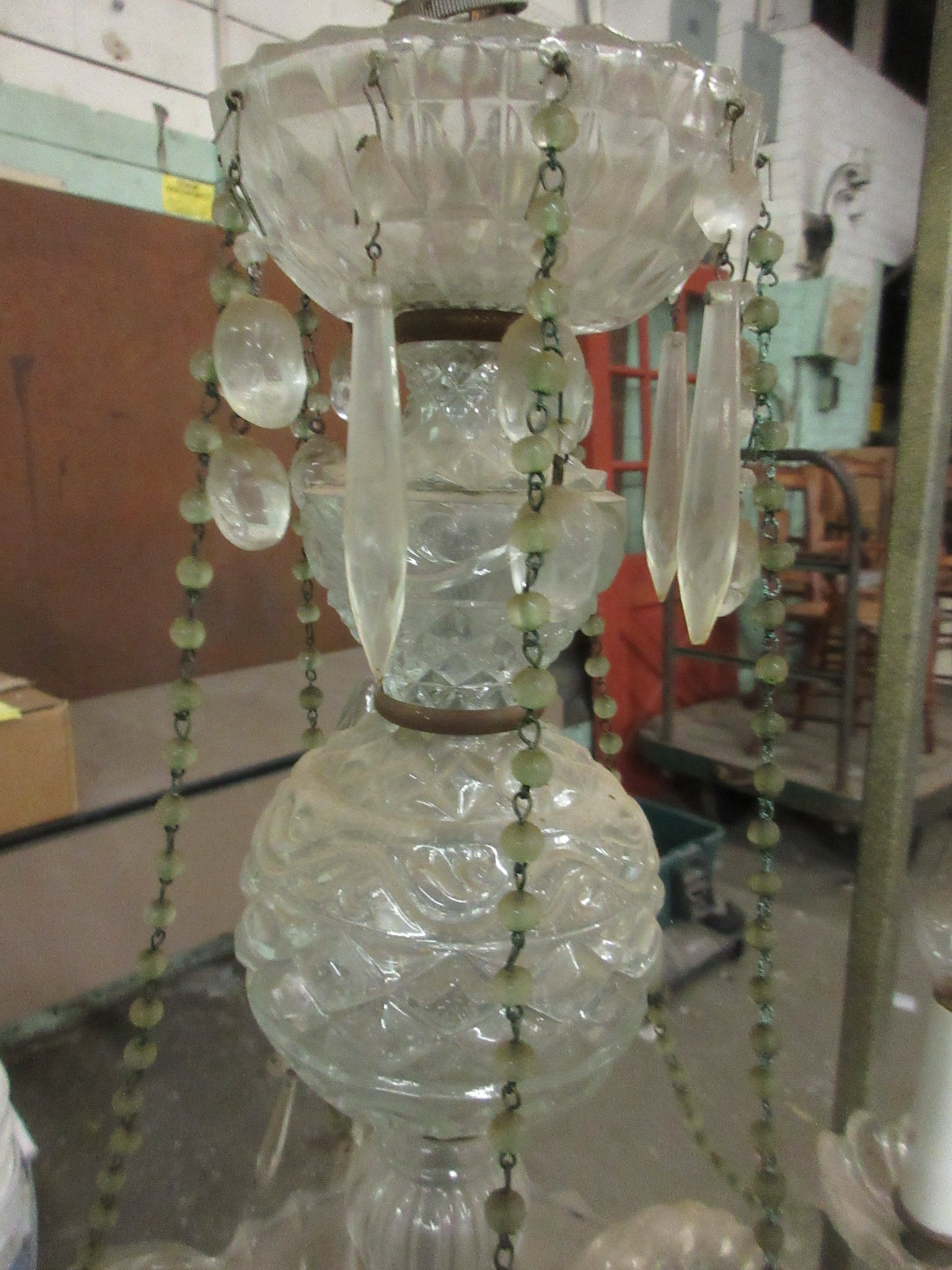 Description : Glass and crystal beaded chandelier.