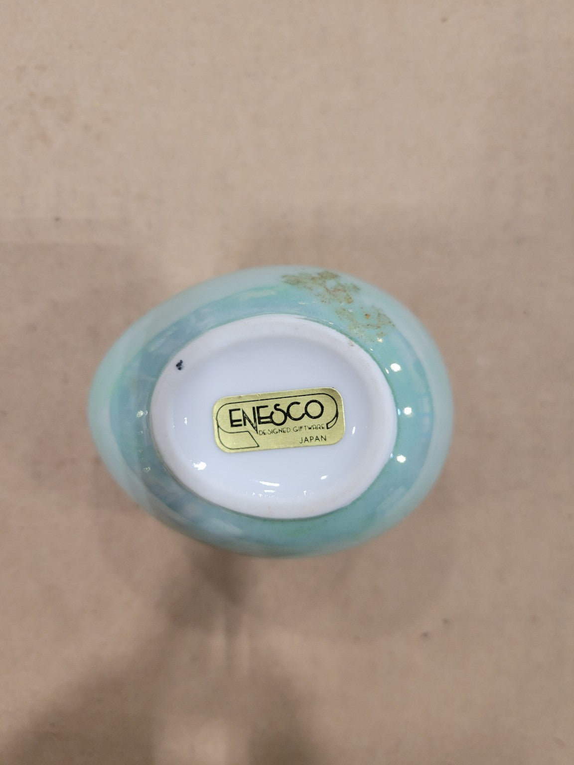Enesco was a major manufacturer of collectible giftware items from Japan during the post-war era, known for its export of whimsical and elegant home decor.