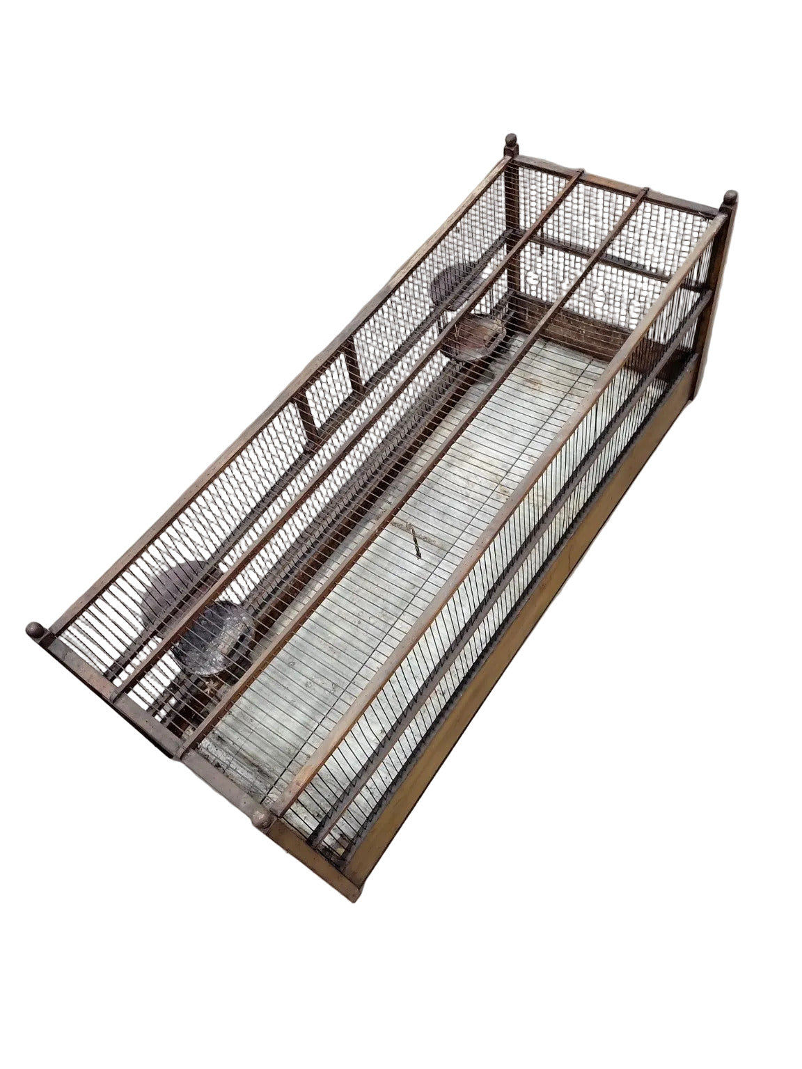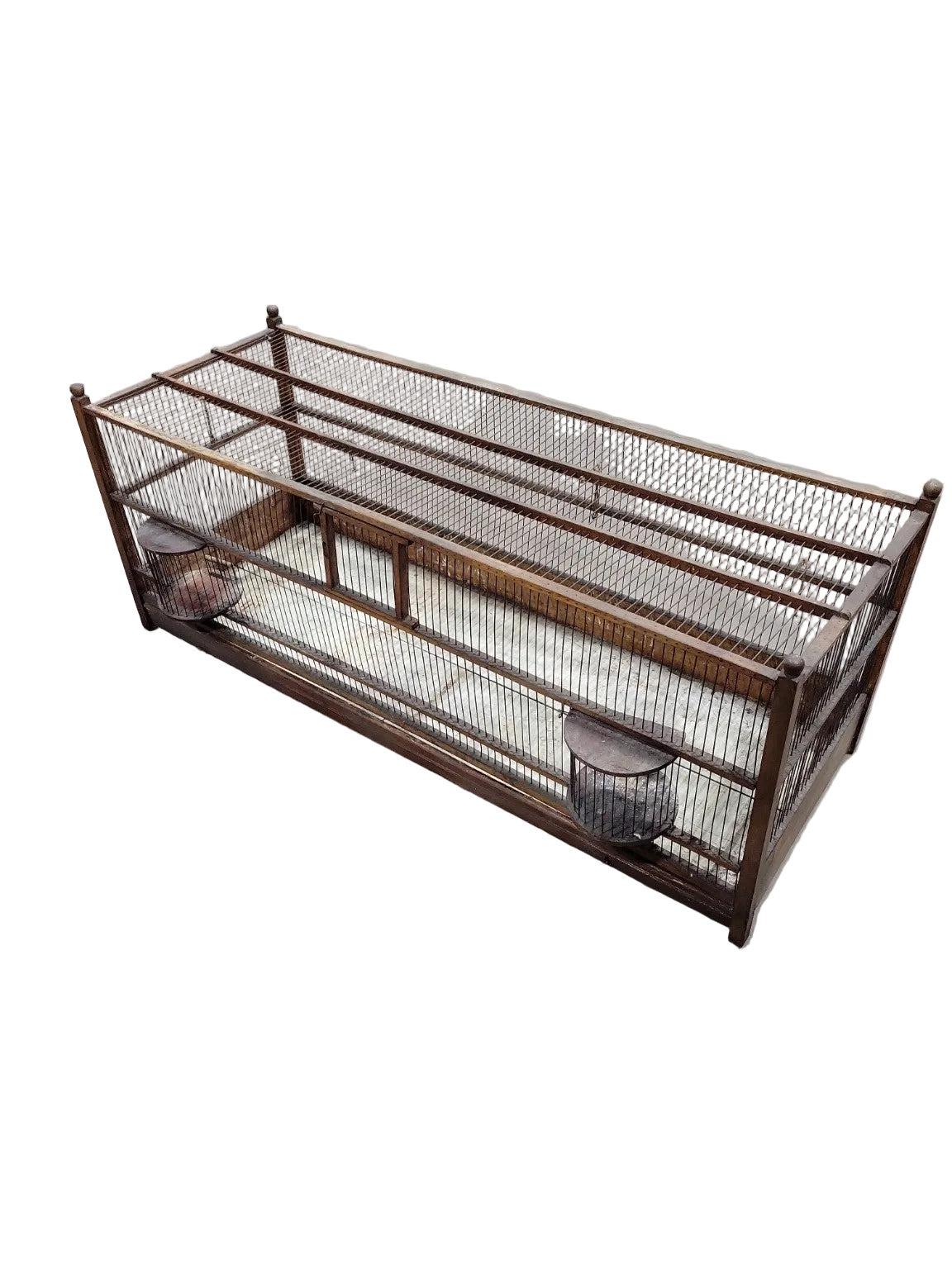 This type of elongated design may have been used for transporting or housing multiple birds, such as finches or doves, possibly for breeding or display in a farm or estate setting.