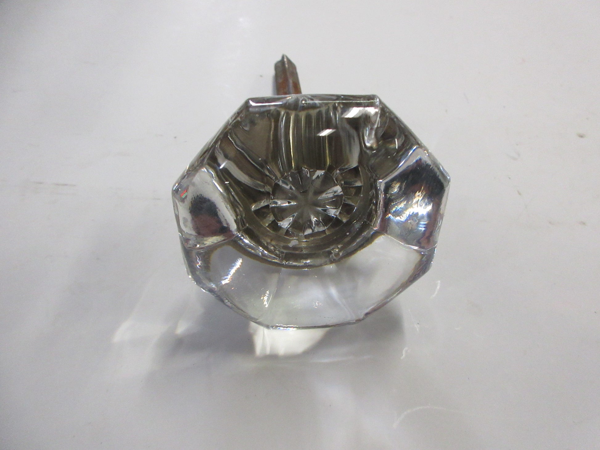 Description : Vintage faceted glass knob with spindle.