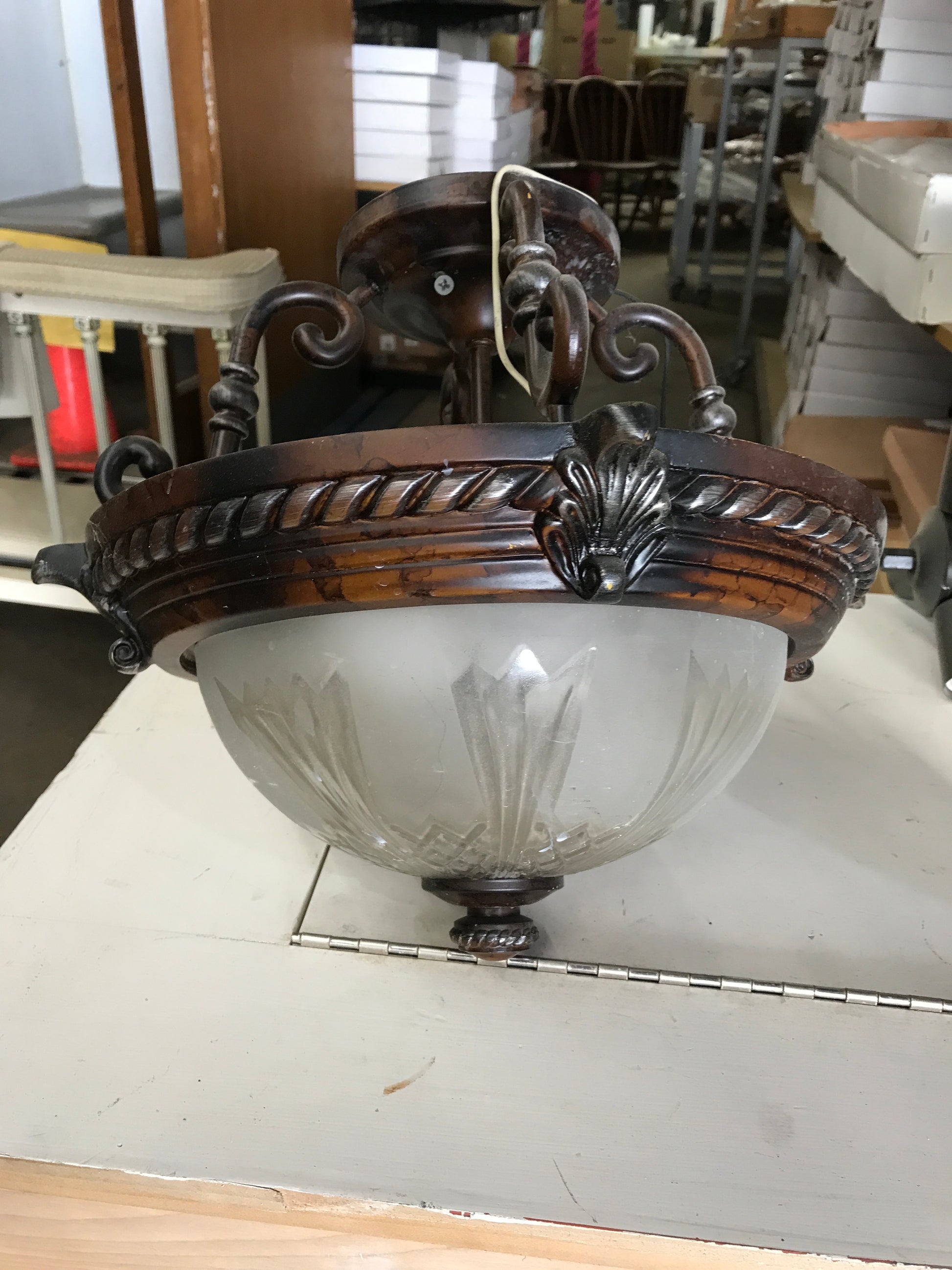 Flush Mount Light Fixture Etched Glass Dome