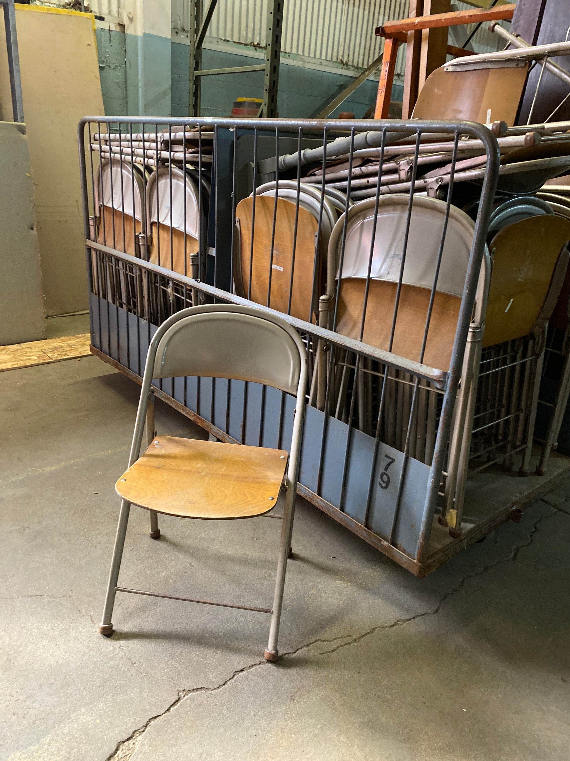 Description : wood and metal folding chairs
