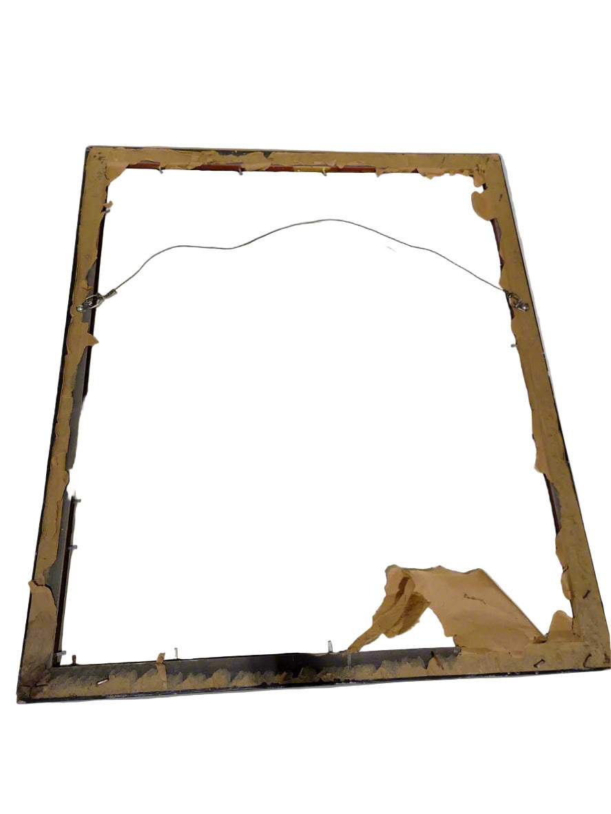 This framed photographic print by Dale Fisher captures a vivid aerial view of the Statue of Liberty at sunset, with deep blues and golden light balancing the composition. The piece is presented in a vintage gold-painted wooden frame with a blue matte and protected under glass. The frame shows some wear and patina, adding character to its nostalgic appeal. Wire hanging hardware is intact on the reverse. A timeless patriotic wall piece for office, study, or Americana décor.