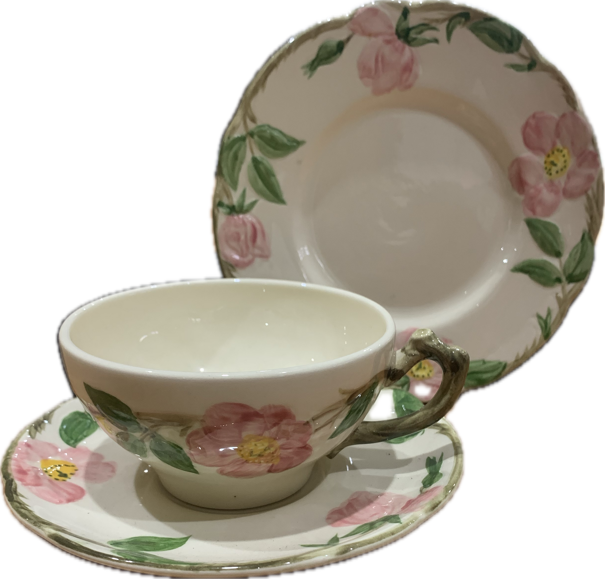 Franciscan Ware hand-painted “Desert Rose” teacup, saucer & dessert plate set