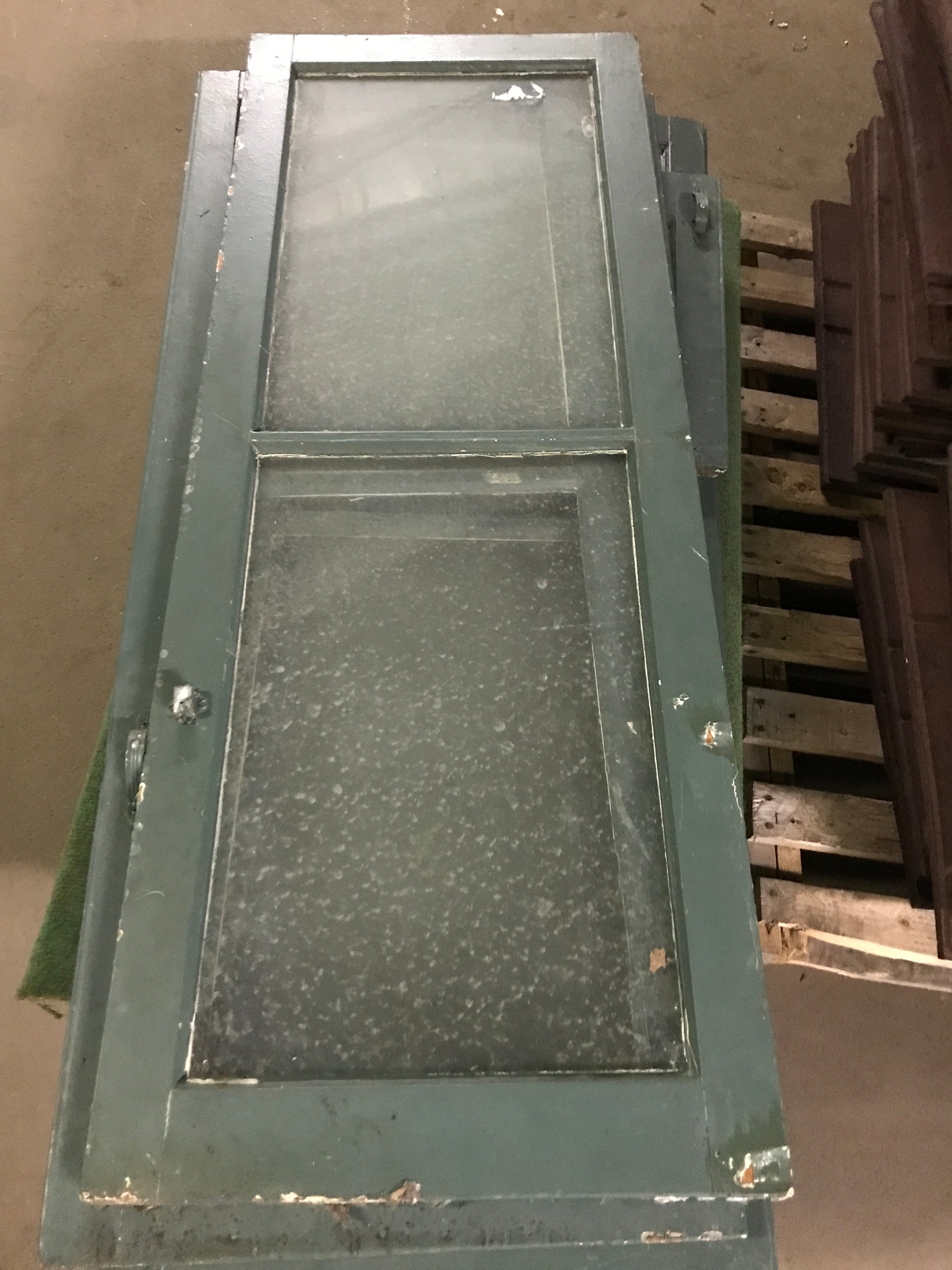 Description : 19 1/2 x 51 1/2 green cabinet doors with glass