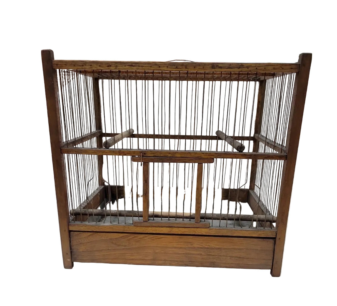 Likely built by hand for household or farm use; common in small-scale aviary practices before industrial cages became prevalent.