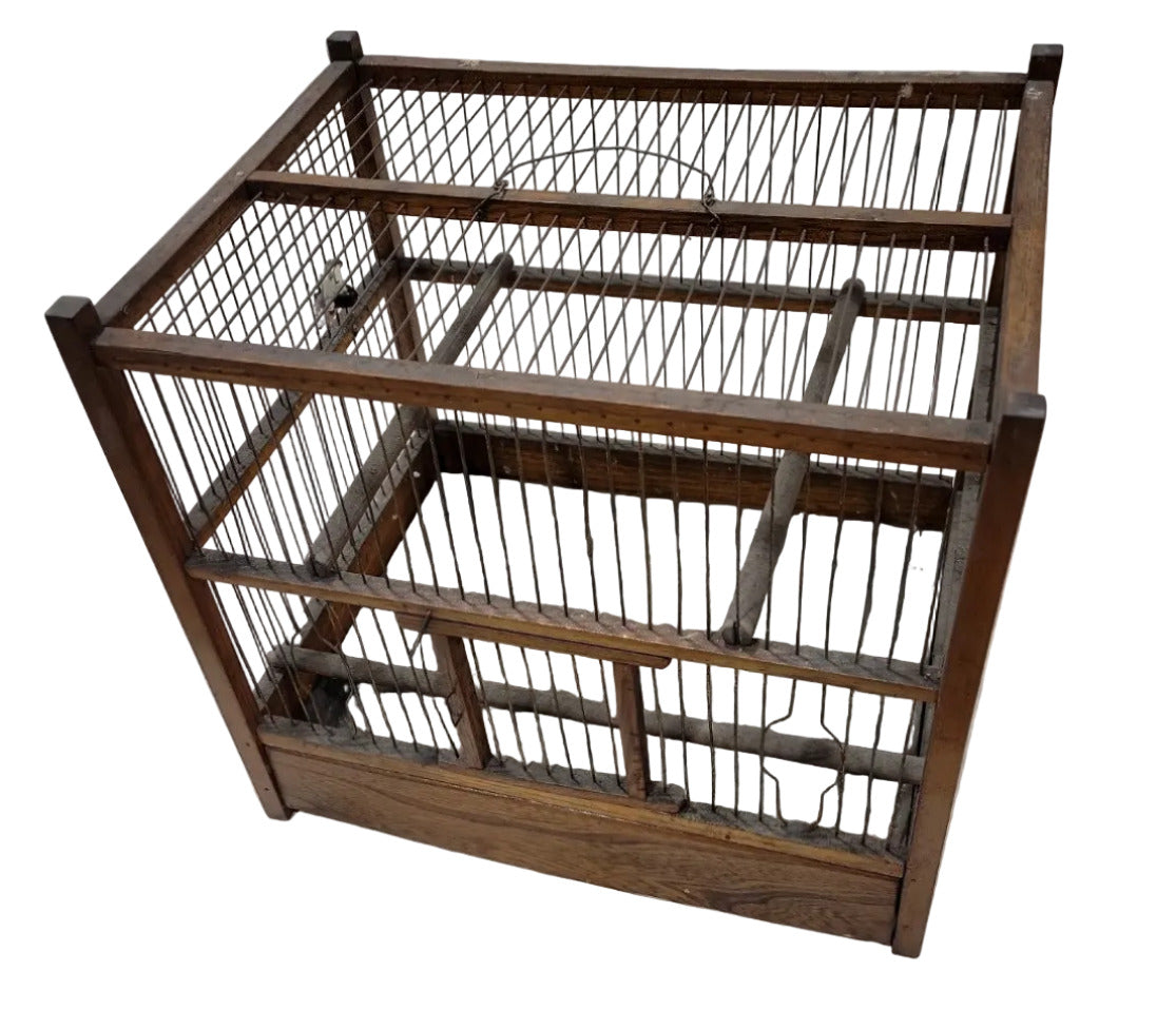 Handmade Vintage Wooden Bird Cage with Wire Bars