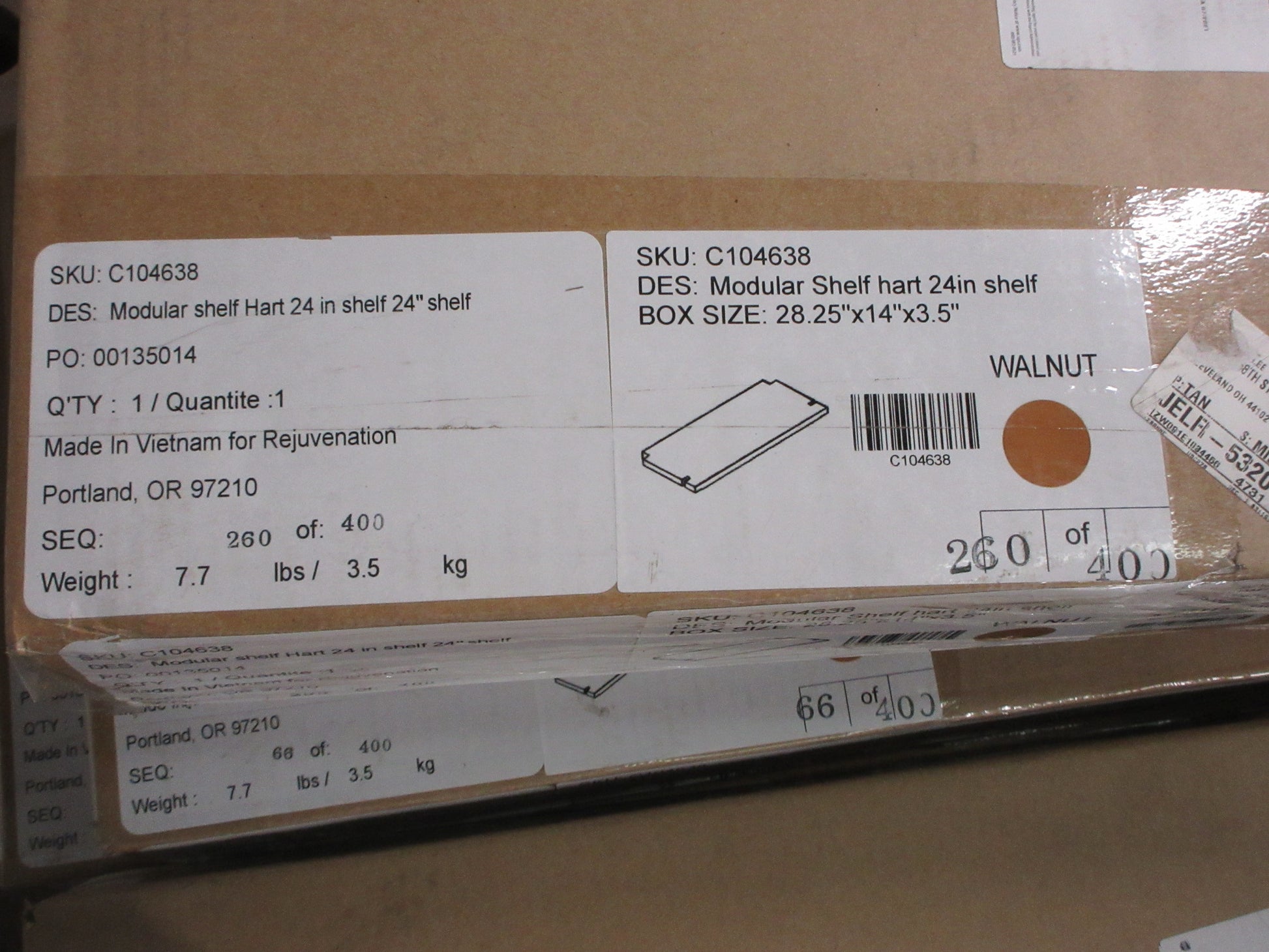 Description : Walnut wall mount shelving unit with nine total shelves and four wall rails. NO shelf brackets come with this set.