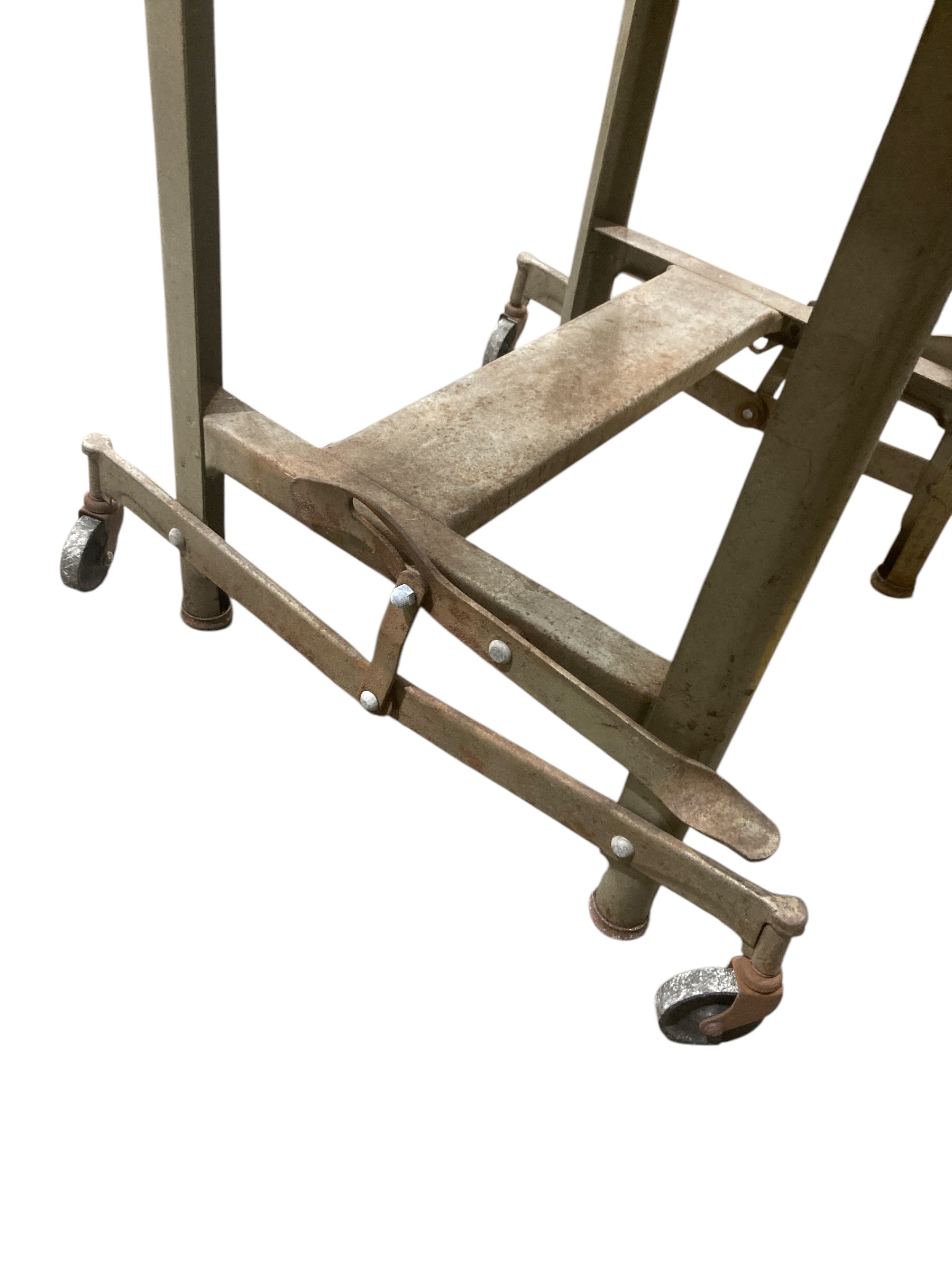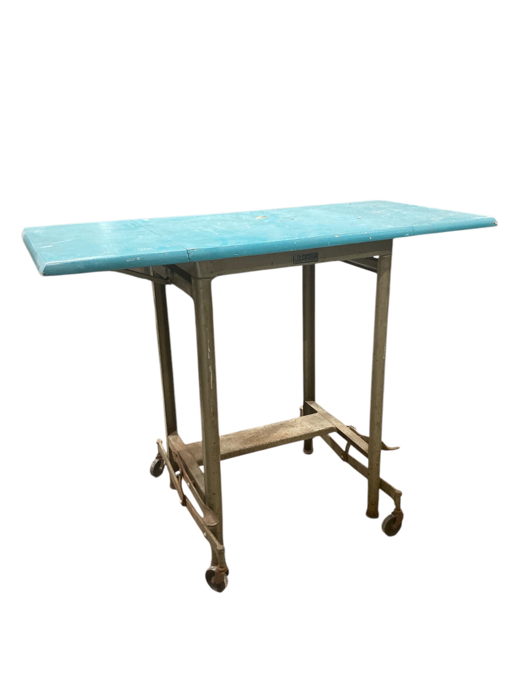 Description : Vintage typewriter drop leaf table. Can be easily adjusted to stand on wheels or legs.