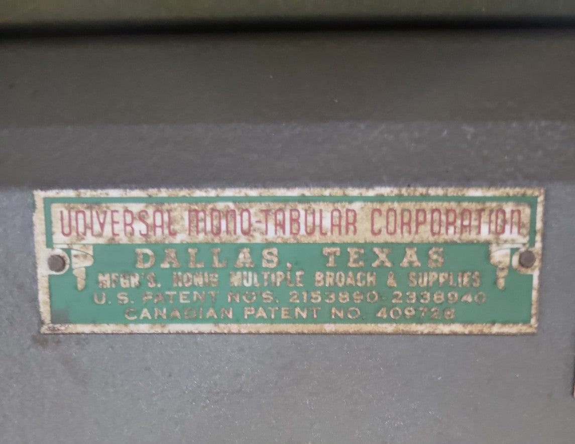 Brand : Universal Mono-Tabular Corporation, Dallas, TX