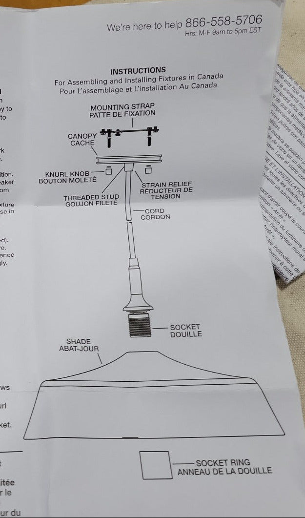 Metal shade, plastic and composite fittings, fabric-covered cord