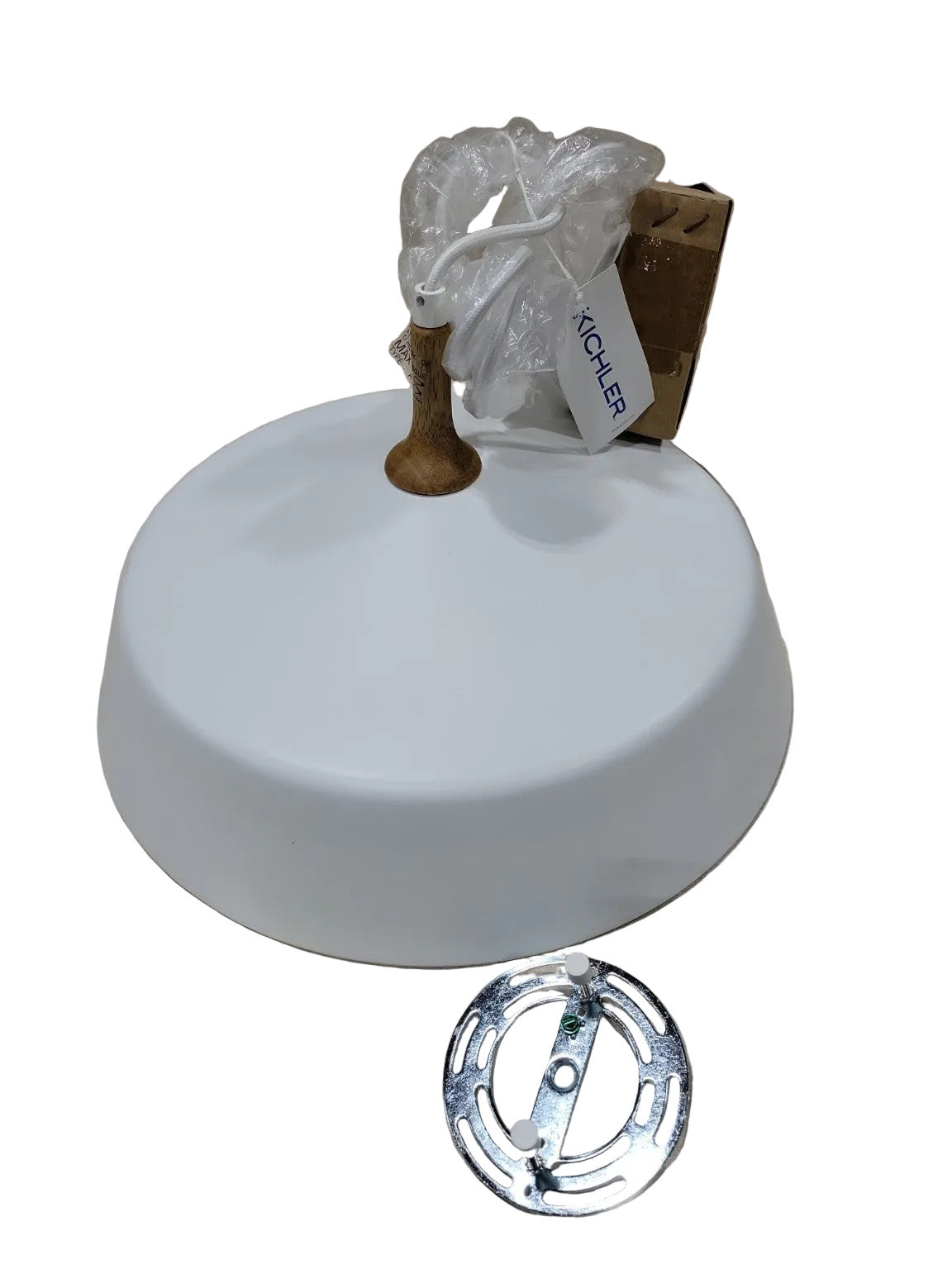 This brand-new Kichler pendant light features a sleek matte white dome shade paired with a wood-look accent socket holder and a white cord. The minimalist design blends modern simplicity with a touch of natural style, ideal for kitchens, dining areas, entryways, or even commercial settings. The fixture includes all original components and hardware, as well as installation instructions. The cord length is adjustable to suit various ceiling heights.