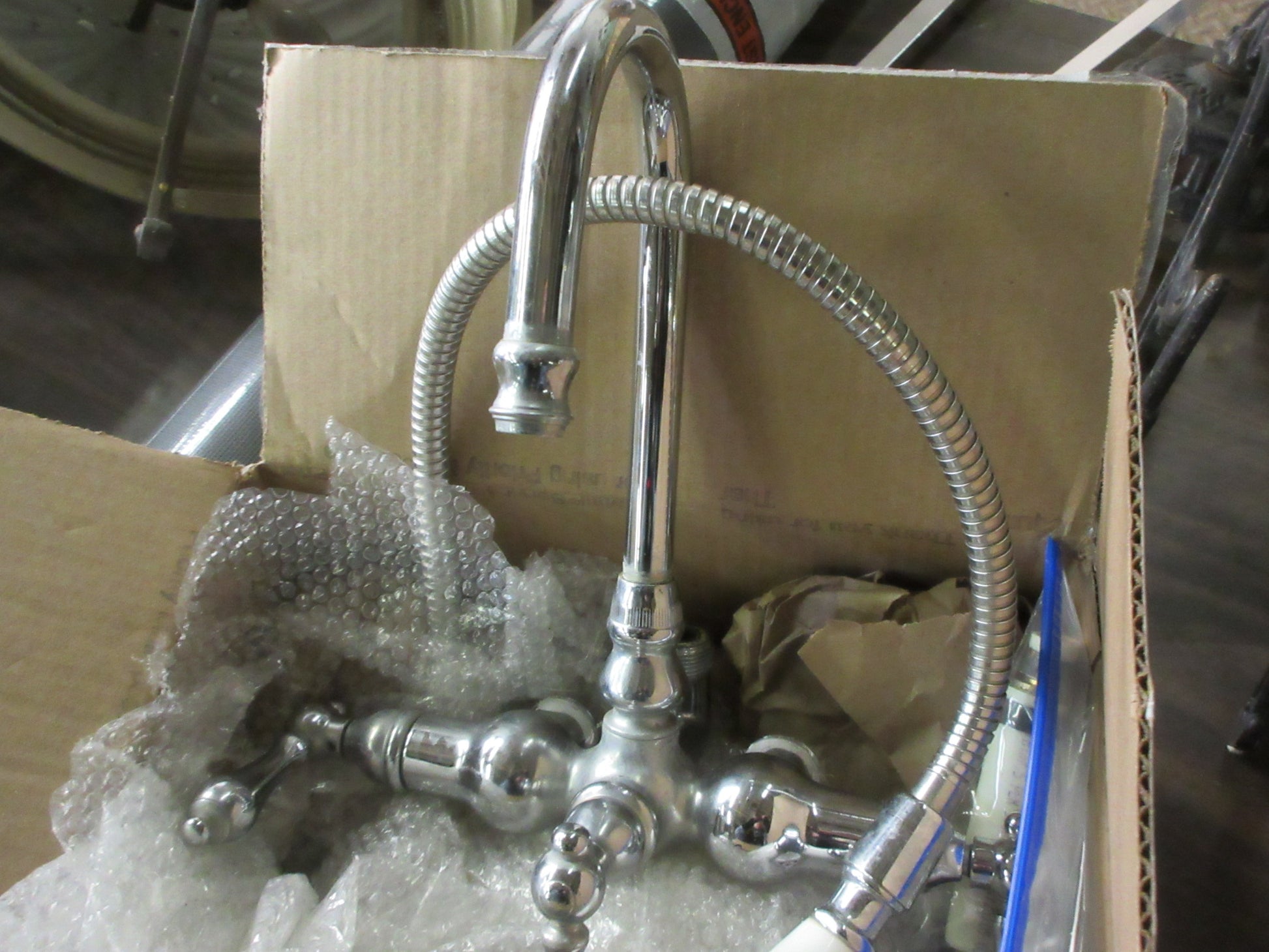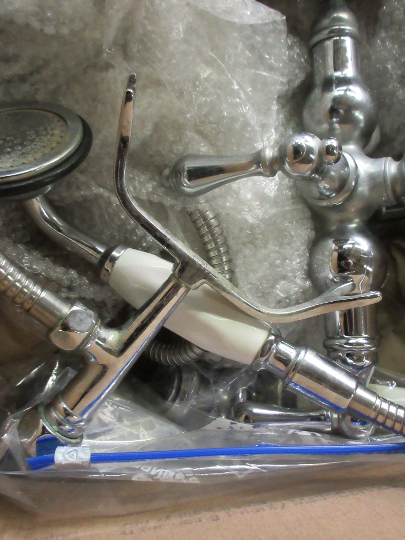 Description : Tub filler with telephone mount hand held shower head in chrome finish.