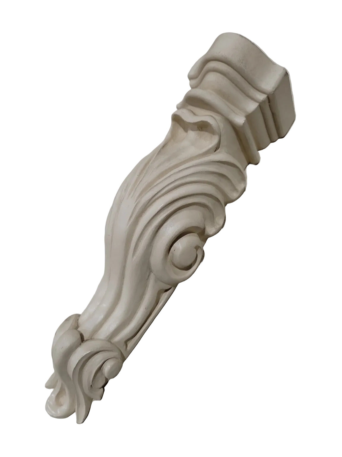 The CA-37 resin corbel from the Traditions Collection brings dramatic vertical presence with its elongated acanthus leaf carvings and scroll embellishments. Cast in solid resin and finished in a soft antique ivory tone, this large-scale architectural accent is perfect for defining entryways, fireplaces, kitchen islands, or classical columns. Its ornate detailing and deep relief make it a bold yet lightweight decorative bracket for non-load bearing installations. Rear keyhole slots allow for secure and flush wall mounting.