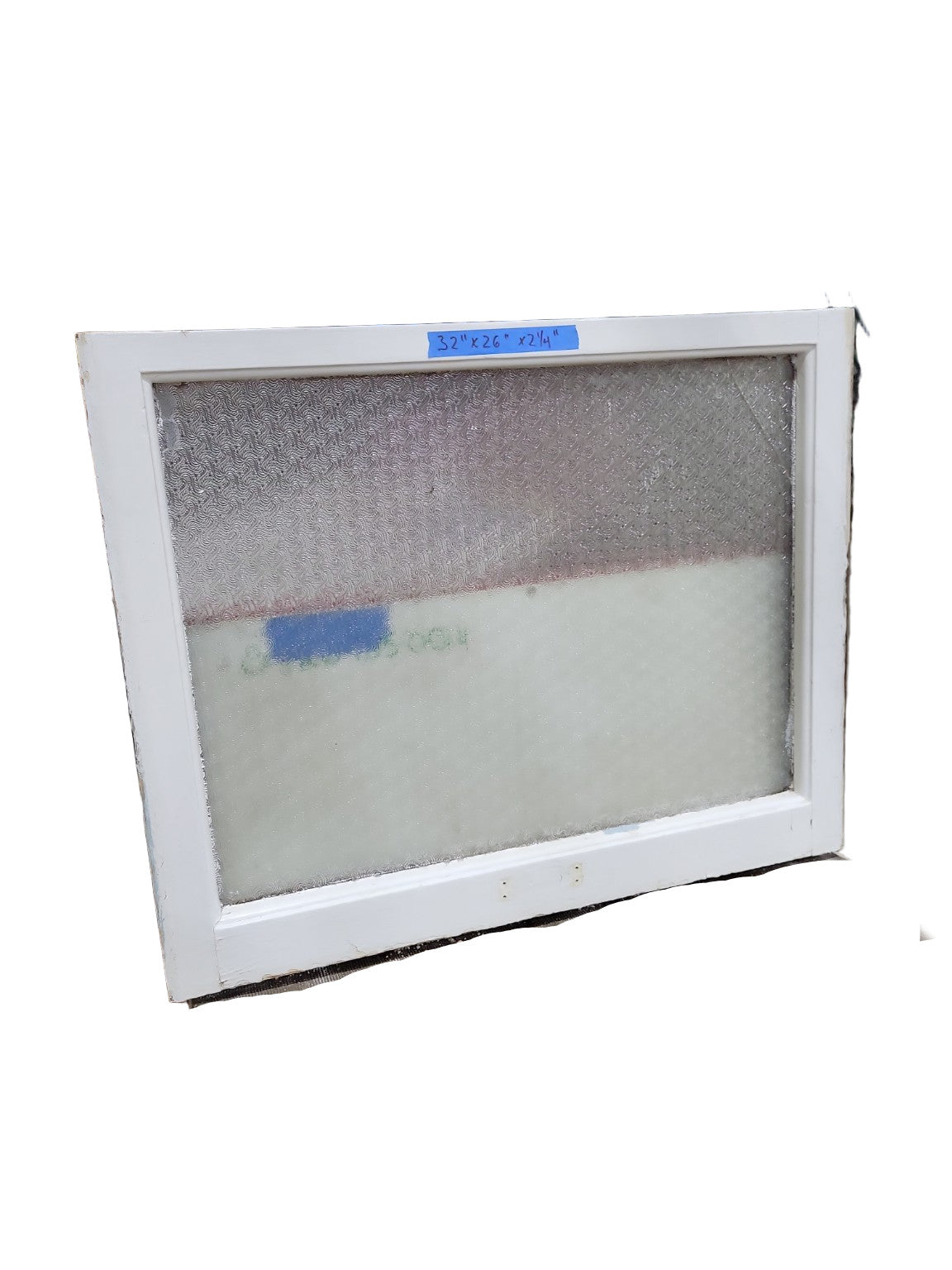 Large Vintage Privacy Glass Window Sash – Swirl Patterned, 32" x 26"