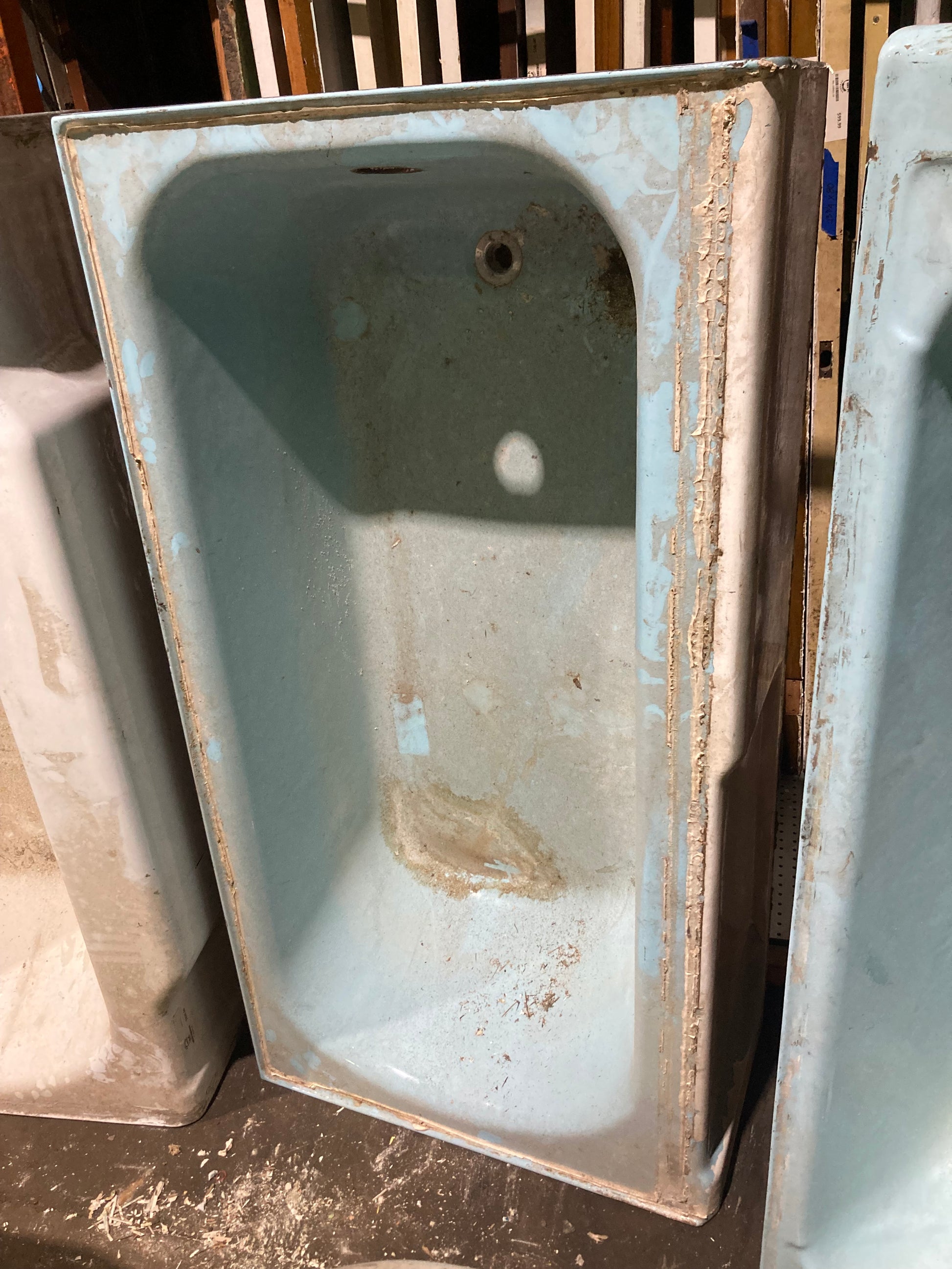 Description : Left Hand Drain Drop-in Tub, blue porcelain.