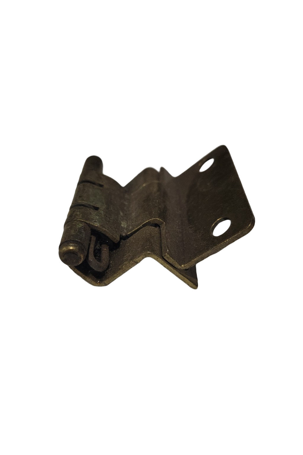 These inset offset hinges were a staple of mid-century kitchen and built-in cabinet construction. Their design allows the cabinet door to overlap the face frame slightly while remaining flush when closed.