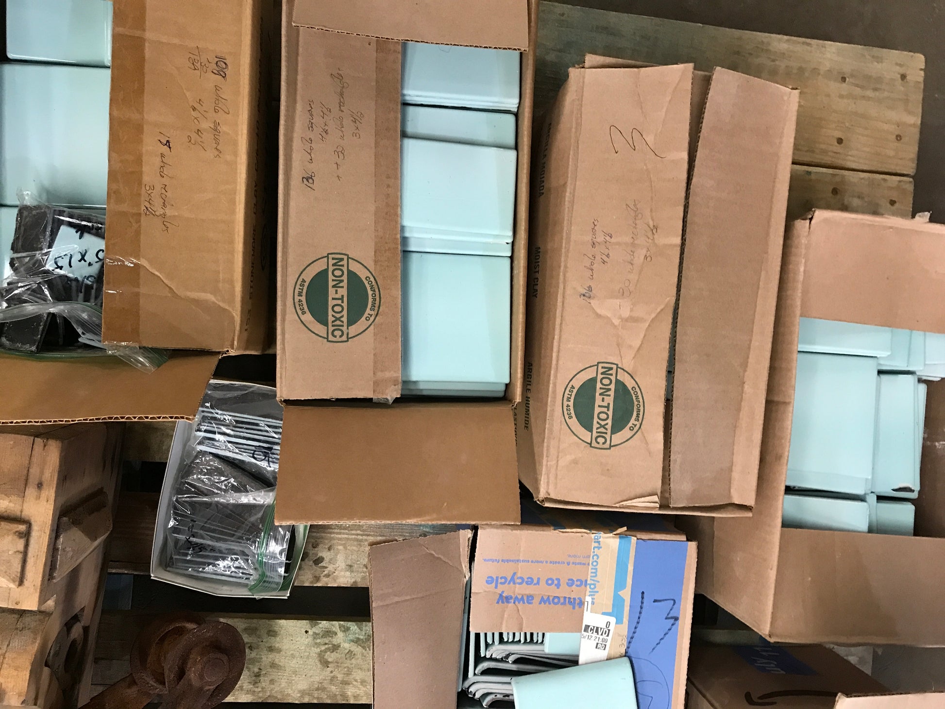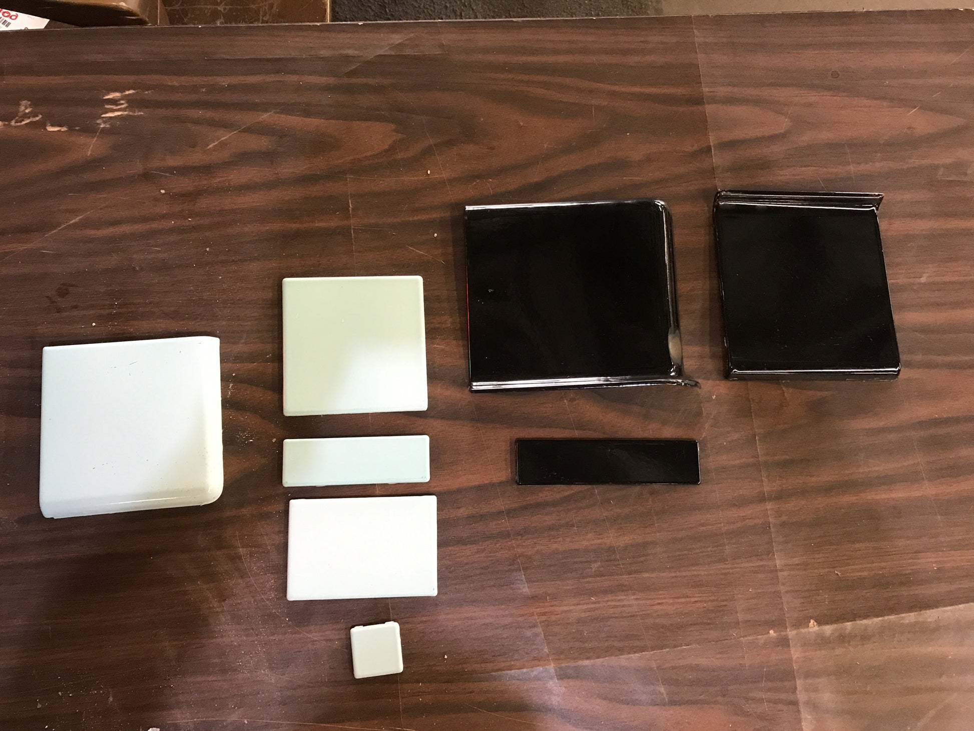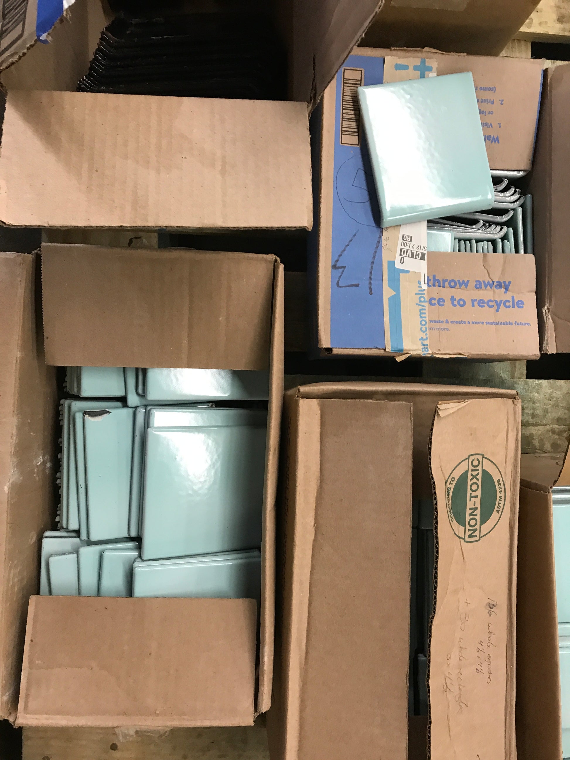 Description : Vintage Metal Tile: Includes GREEN: 4 1/2" x 4 1/2"- 517 PCS/72sq ft : Bullnose 4 1/2" x 5" 55pcs/22 LF : 4- Corner Bullnose PCs: 1 1/2" x 1 1/2" square- 46pcs: Trim 1 1/2" x 4 1/2" 29pcs/10LF : 3" x 4 1/2" 107PCs/10sq ft BLACK: Baseboard Trim 6" x 6" 33pcs/16LF: One RH Corner PC, One LH Corner Piece: 1 1/2" x 6" Trim 16PC/8LF 3" x 4 1/2" 107pcs/10sq ft